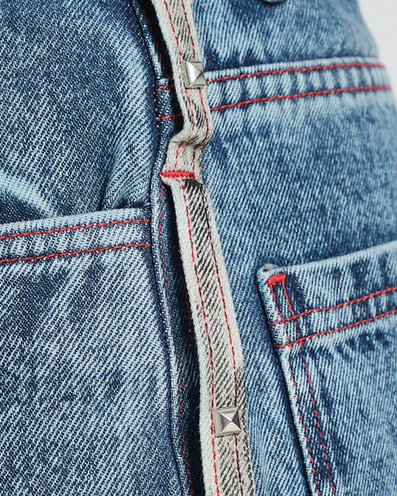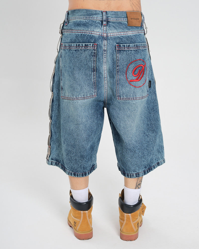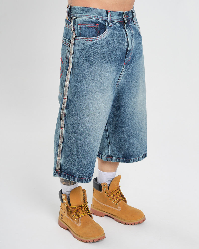 Bermuda jort de silueta oversize, confeccionada en denim resistente con lavado medio. Diseño urbano con costuras en contraste, bolsillos amplios y detalles gráficos que elevan el look street. Una pieza clave para outfits relajados pero con carácter.