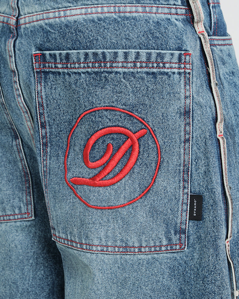 Jean baggy de silueta amplia con lavado oscuro efecto desgaste. Confeccionado en denim resistente, cuenta con bolsillos reforzados con remaches metálicos, costuras visibles y etiqueta posterior Dynamo en cuero sintético. Fit relajado que cae suelto desde la cadera, ideal para un look street sólido.