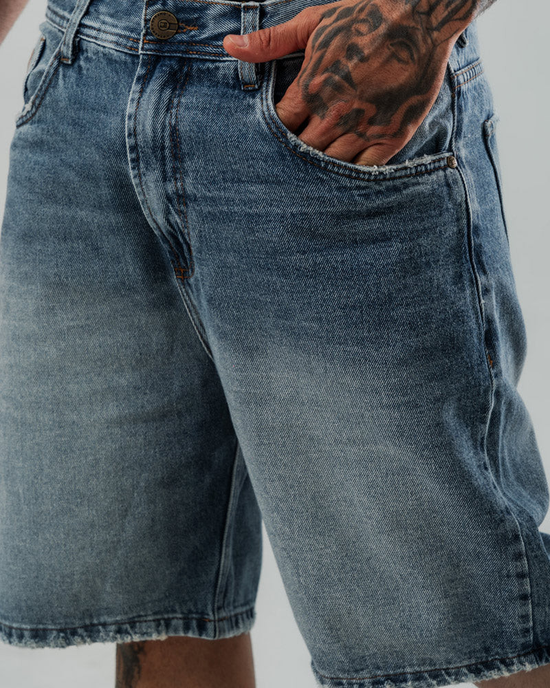 Bermuda básica en denim rígido con fit relajado y resistencia premium. Hecha para quienes buscan versatilidad y estilo sin perder actitud. Una pieza atemporal que conecta con tu esencia rebelde, ideal para cualquier ocasión.