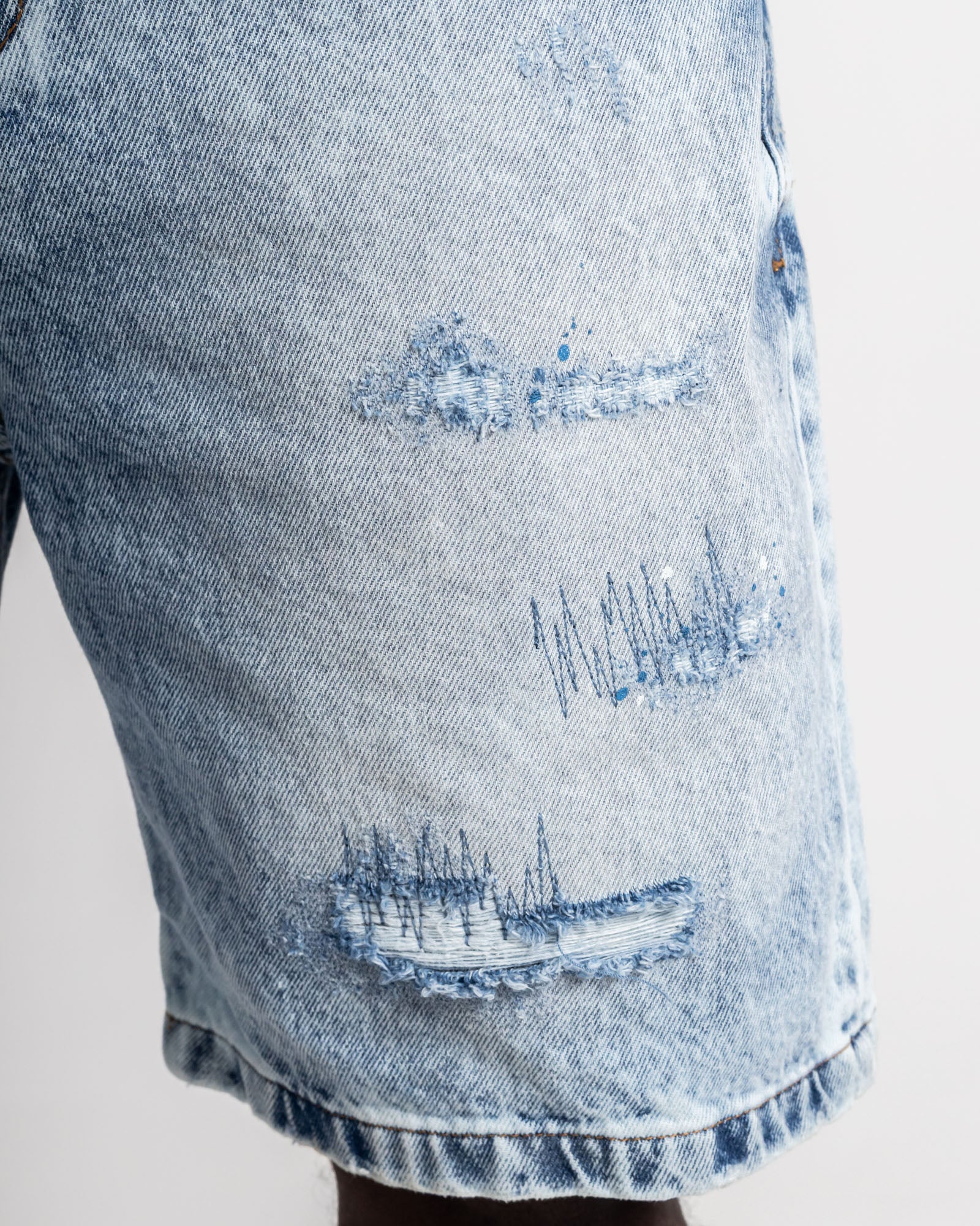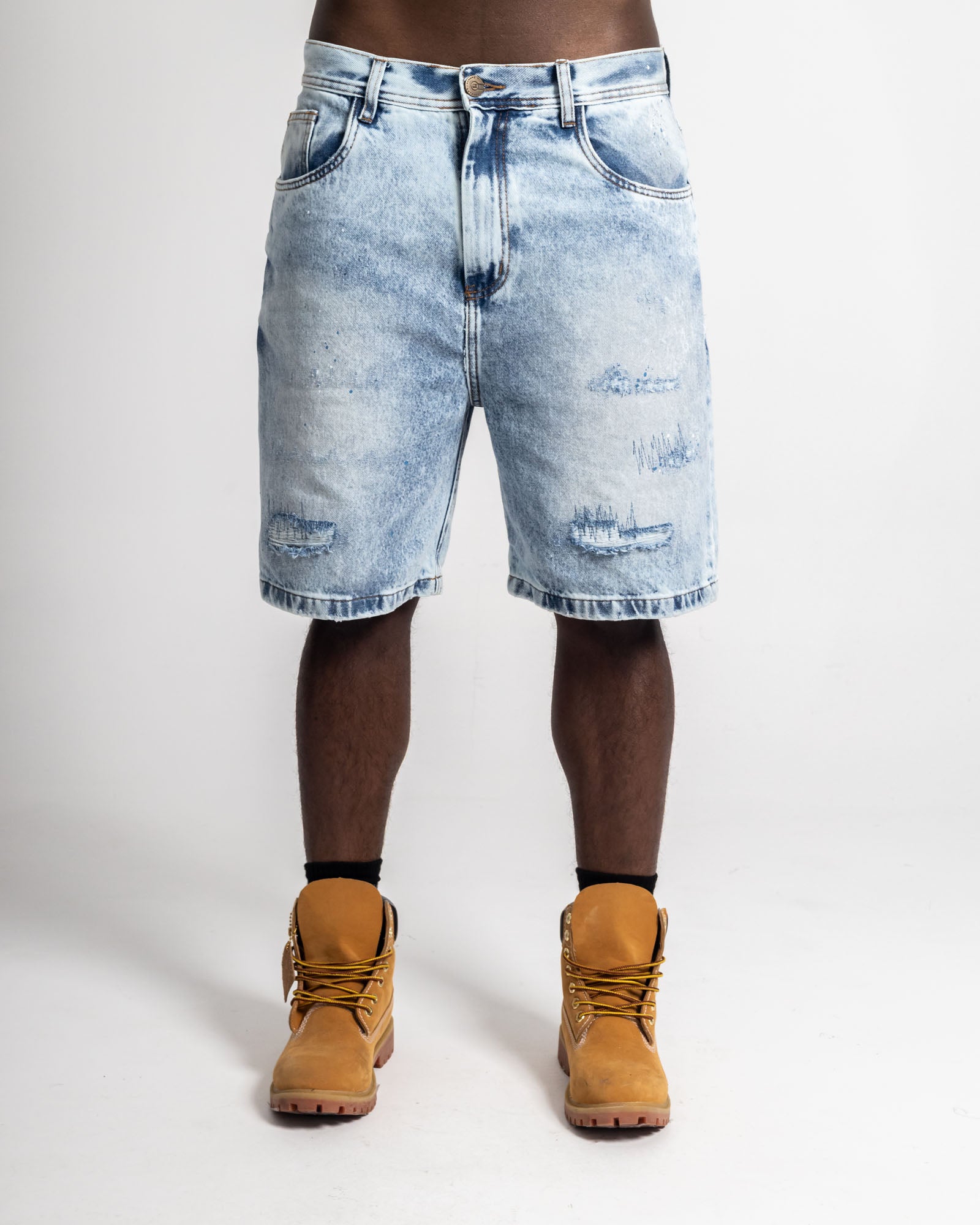Bermuda regular en denim claro con actitud street. Confeccionada en jean resistente y cómodo, presenta un lavado desgastado con detalles sutiles que le dan carácter. Corte recto a la rodilla, pretina con pasadores, bolsillos funcionales adelante y atrás, y terminaciones limpias que elevan el look. Una pieza versátil, sólida y lista para romperla en el día a día.