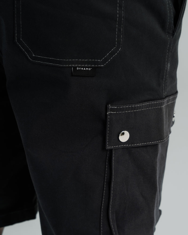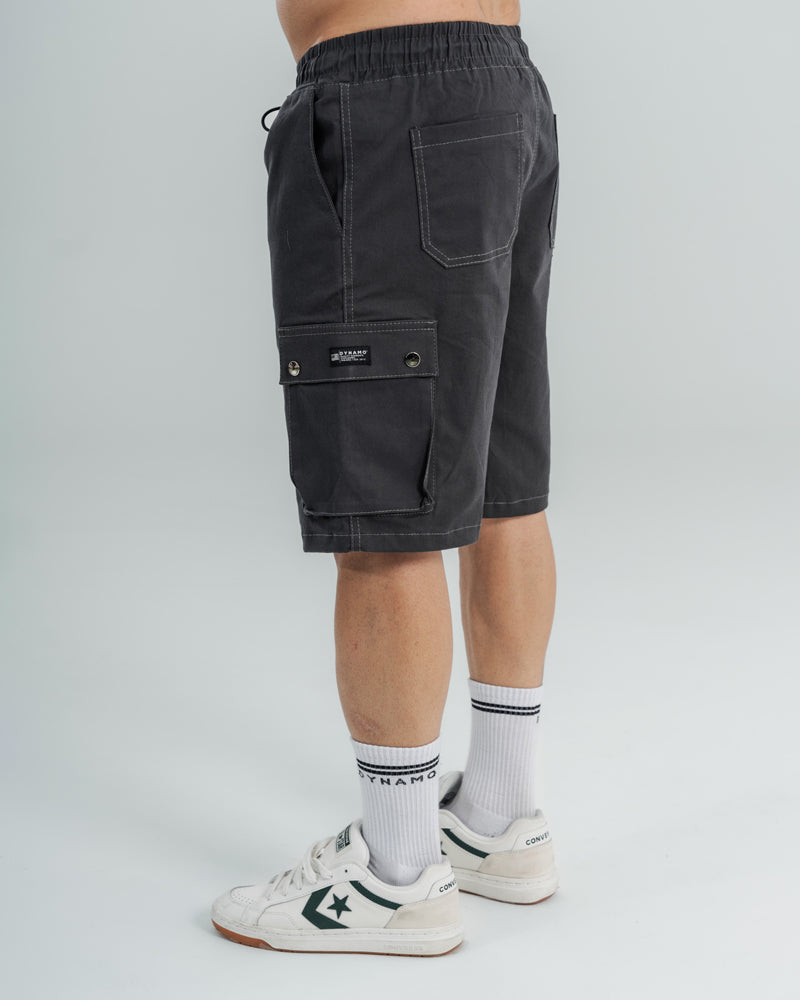 Bermuda cargo Dynamo: diseñada para la calle y para resistirlo todo. Confeccionada en textil rígido de alta durabilidad, con bolsillos laterales de botón y costuras marcadas que elevan el estilo utilitario. Un fit cómodo y seguro para moverse sin límites.Hecha para quienes rompen la rutina.