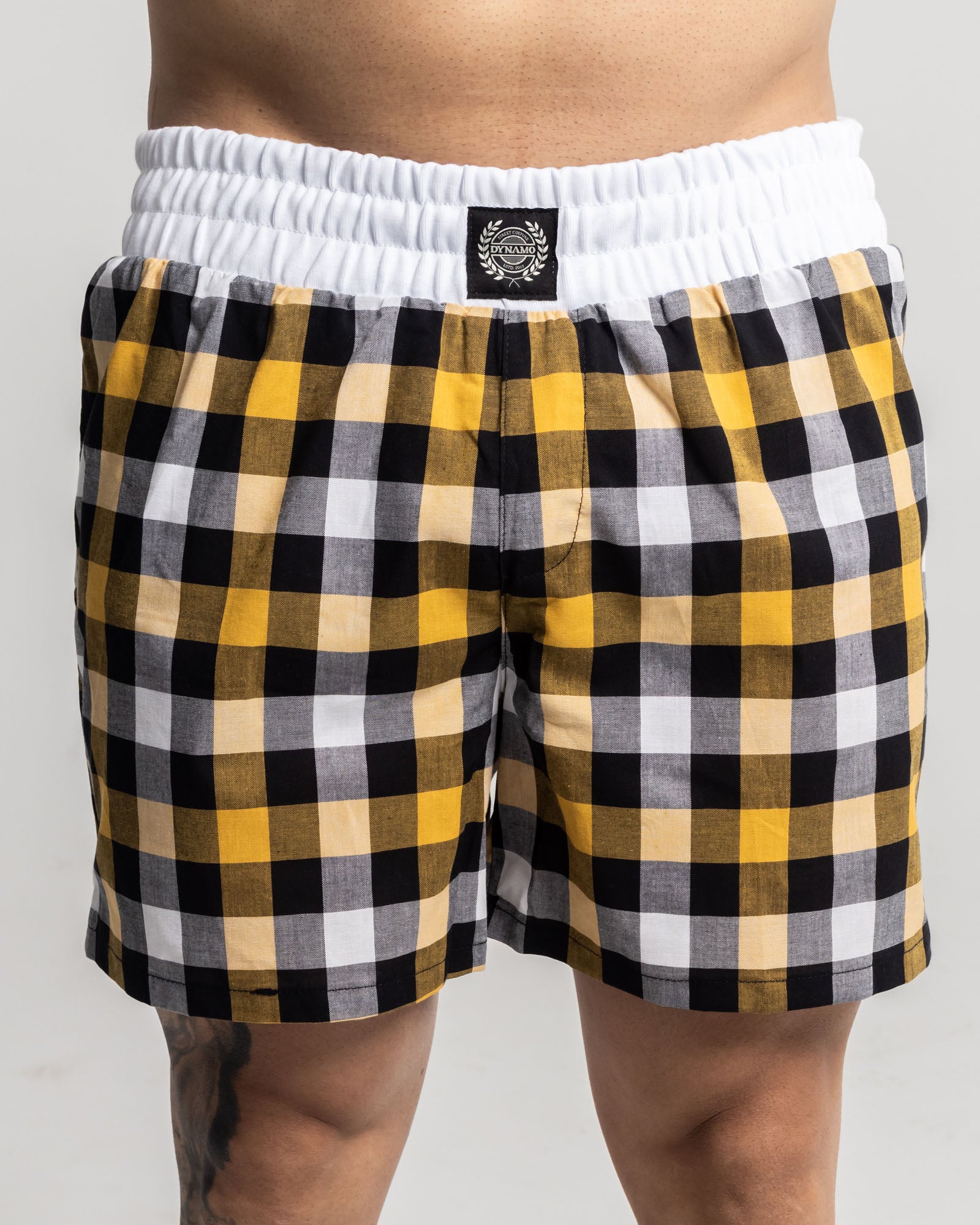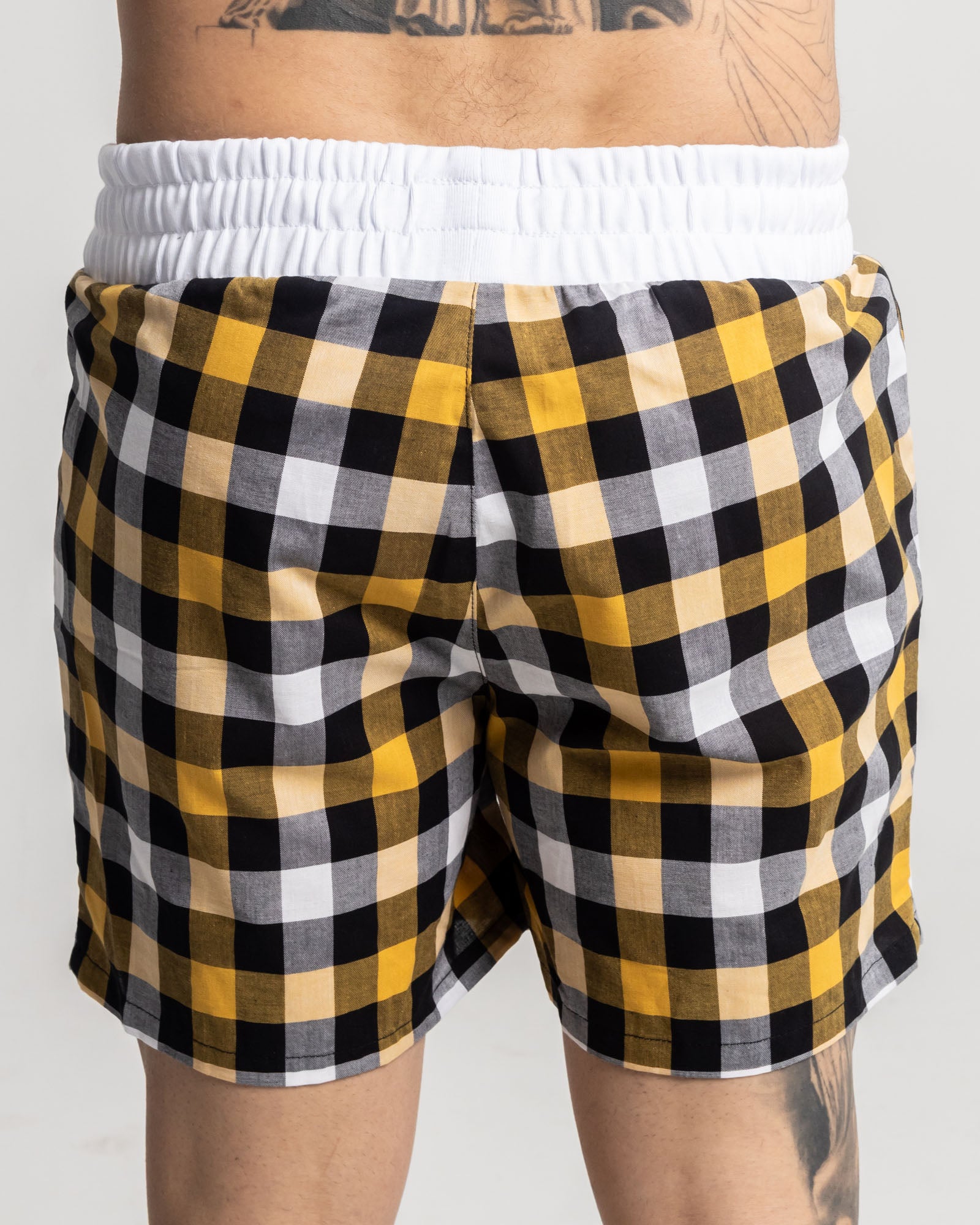Boxer fit vintage. Flow cómodo, hecho en algodón liviano de tacto suave, con pretina elástica blanca de alto rebote y estampado a cuadros, fresco, ligero y listo para moverse contigo dentro y fuera de casa.