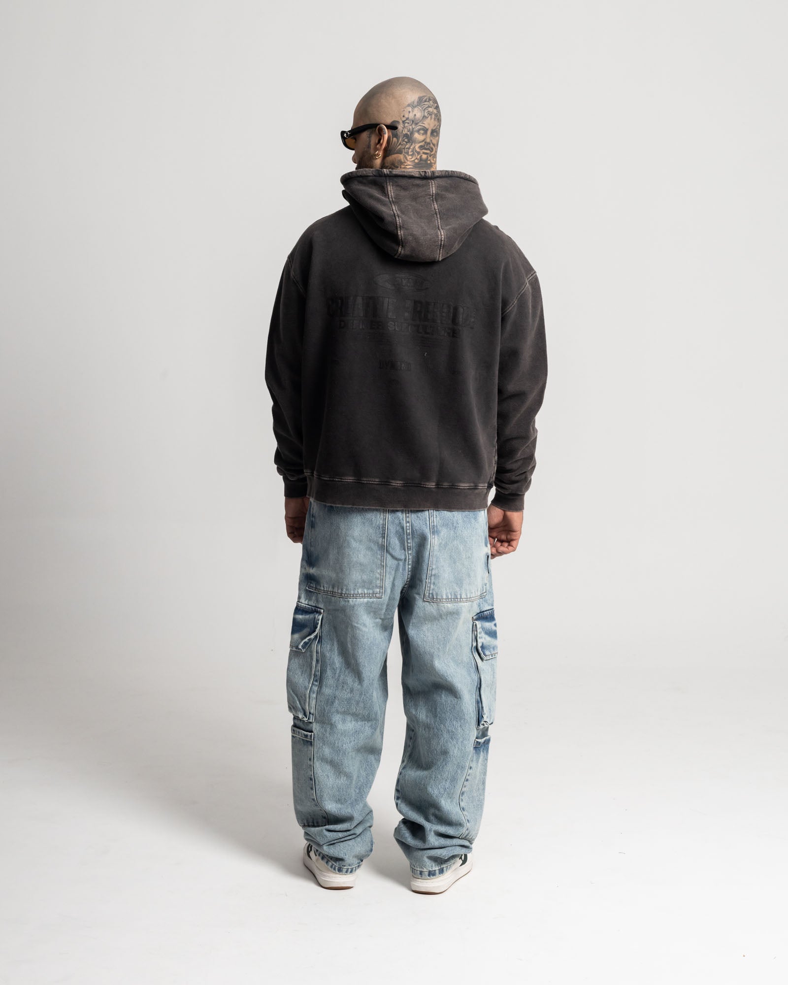 Buzo Oversize Gris Medio con acabado desgaste uniforme, cierre full zipper y capucha amplia. Fabricado en algodón premium de alto gramaje que aporta caída pesada y confort. Incluye bordado minimal DNM al tono, costuras marcadas y bolsillos frontales que completan un look urbano sólido.