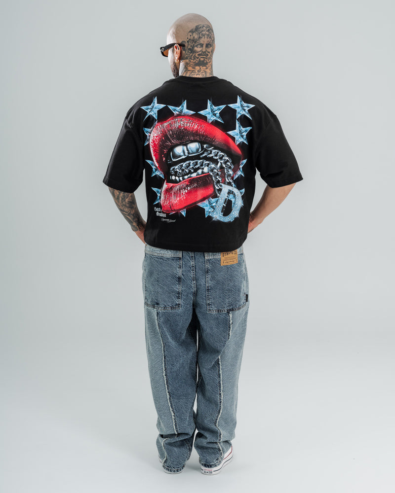 Camiseta Boxy Star Chain es una pieza que grita poder y rebeldía. Con base 100% algodón peruano (190–220 g), combina estructura y confort premium. Su gráfico trasero con labios y cadena metálica refleja la esencia sin filtros de Dynamo: provocadora, audaz y auténtica.