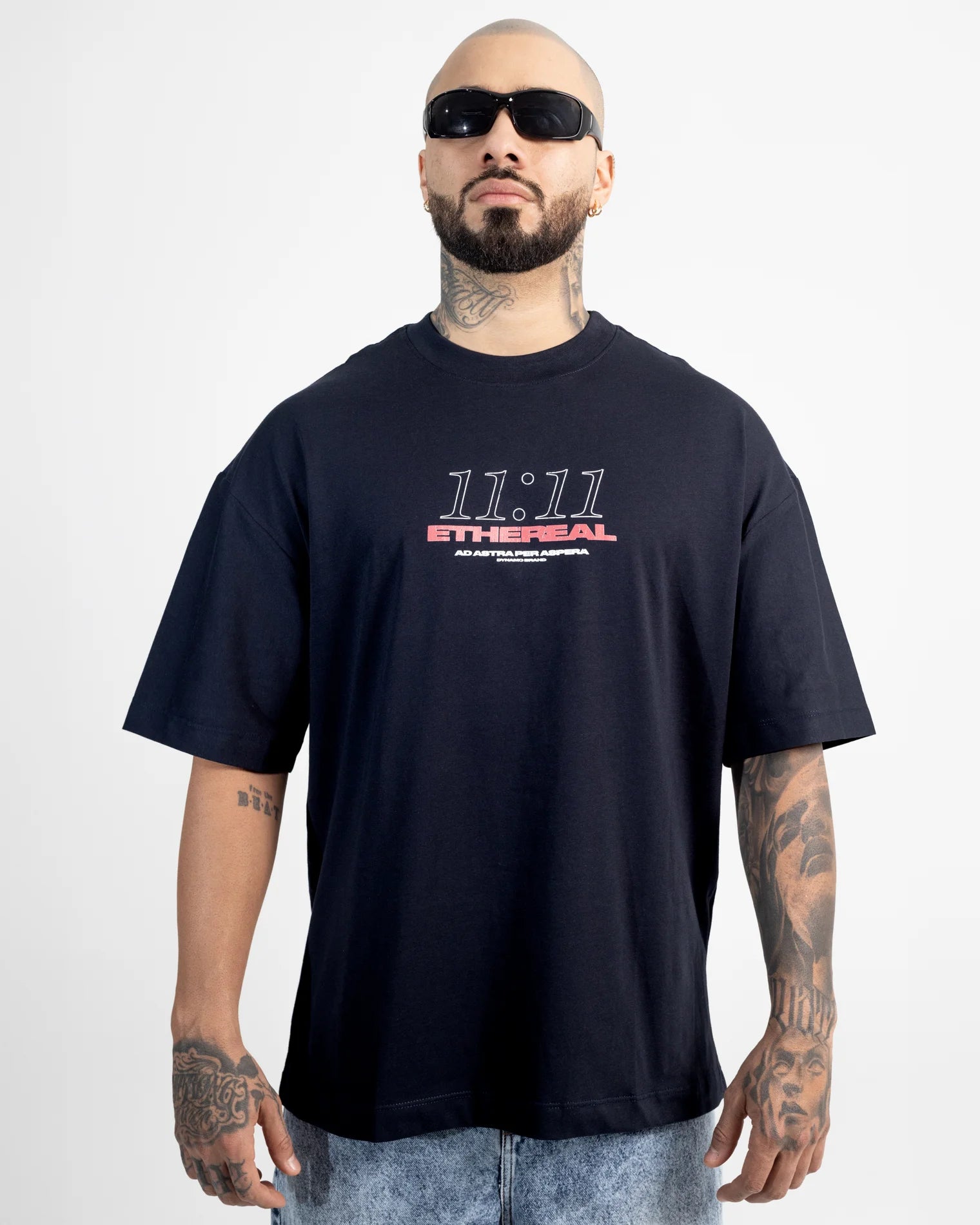 Camiseta Oversize en algodón grueso llega con un vibe callejero fuerte: frente minimalista con logo tono a tono y espalda con un gráfico angelical heavy que rompe la rutina. Silueta amplia, caída relajada y base textil suave pero resistente.