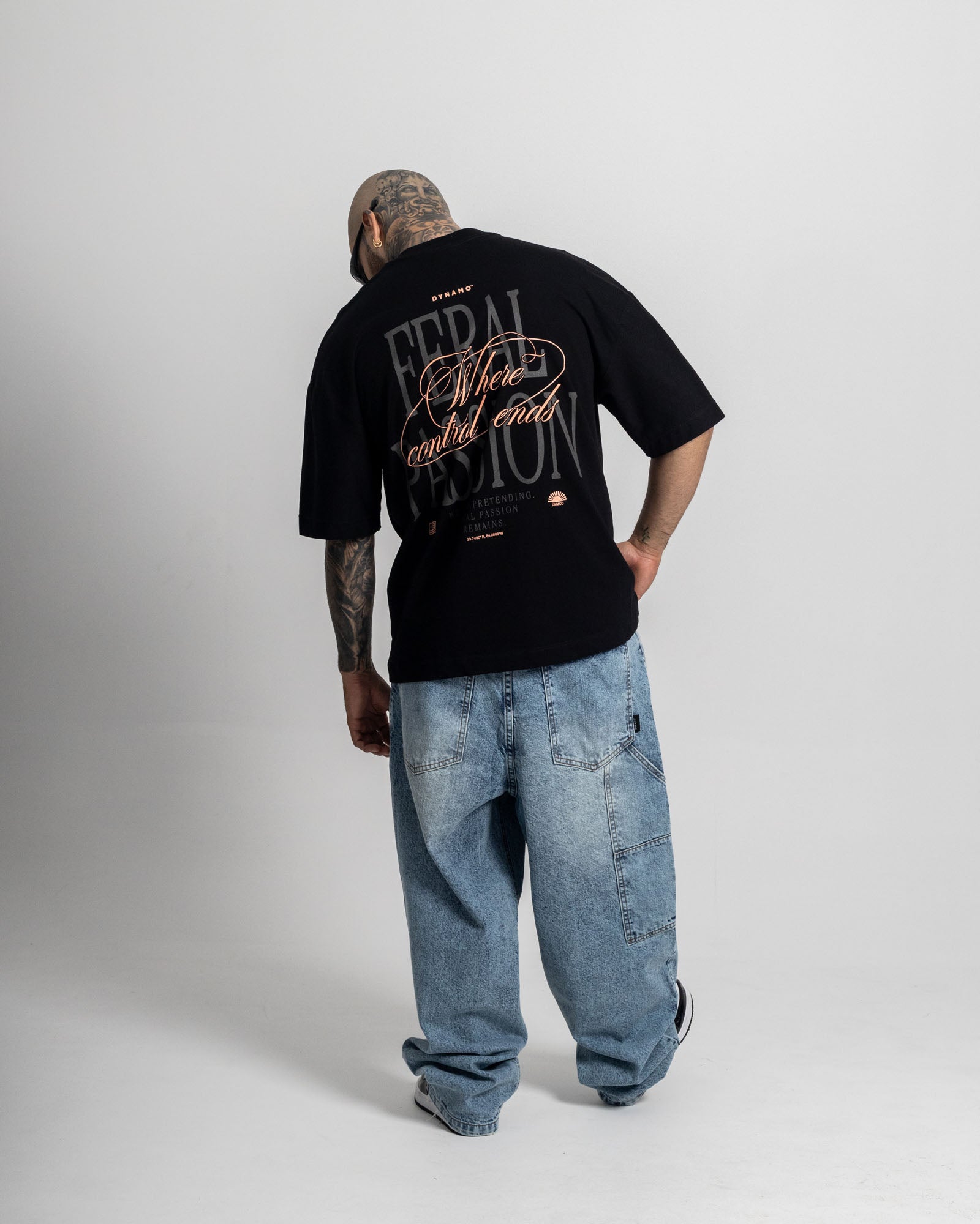 Camiseta oversize de silueta amplia y caída pesada, confeccionada en algodón de alto gramaje para un look urbano premium. Diseño gráfico posterior con tipografía contrastada y mensaje protagonista que refuerza la identidad street de Dynamo. Cuello redondo reforzado, mangas amplias y acabados de alta durabilidad.