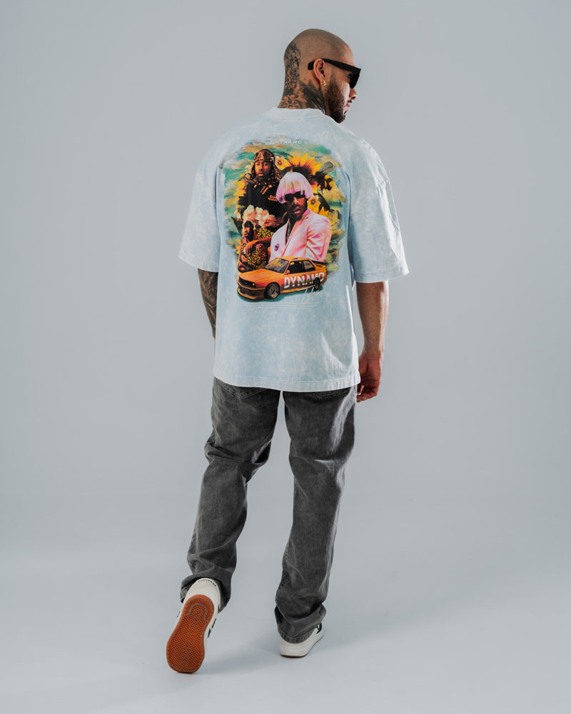 La camiseta oversize acid wash "Retro Vibes" combina el estilo urbano con una dosis de nostalgia noventera. Confeccionada en algodón 100% de alto gramaje (190g - 220g aprox.), su efecto acid wash azul pastel aporta textura visual única y un look desgastado premium. El estampado tipo collage rinde homenaje a la cultura pop: íconos, flores, un clásico deportivo y detalles en contraste, capturando el ADN irreverente de Dynamo. Corte oversize, cuello reforzado y estampado digital de alta definición para una prenda statement.