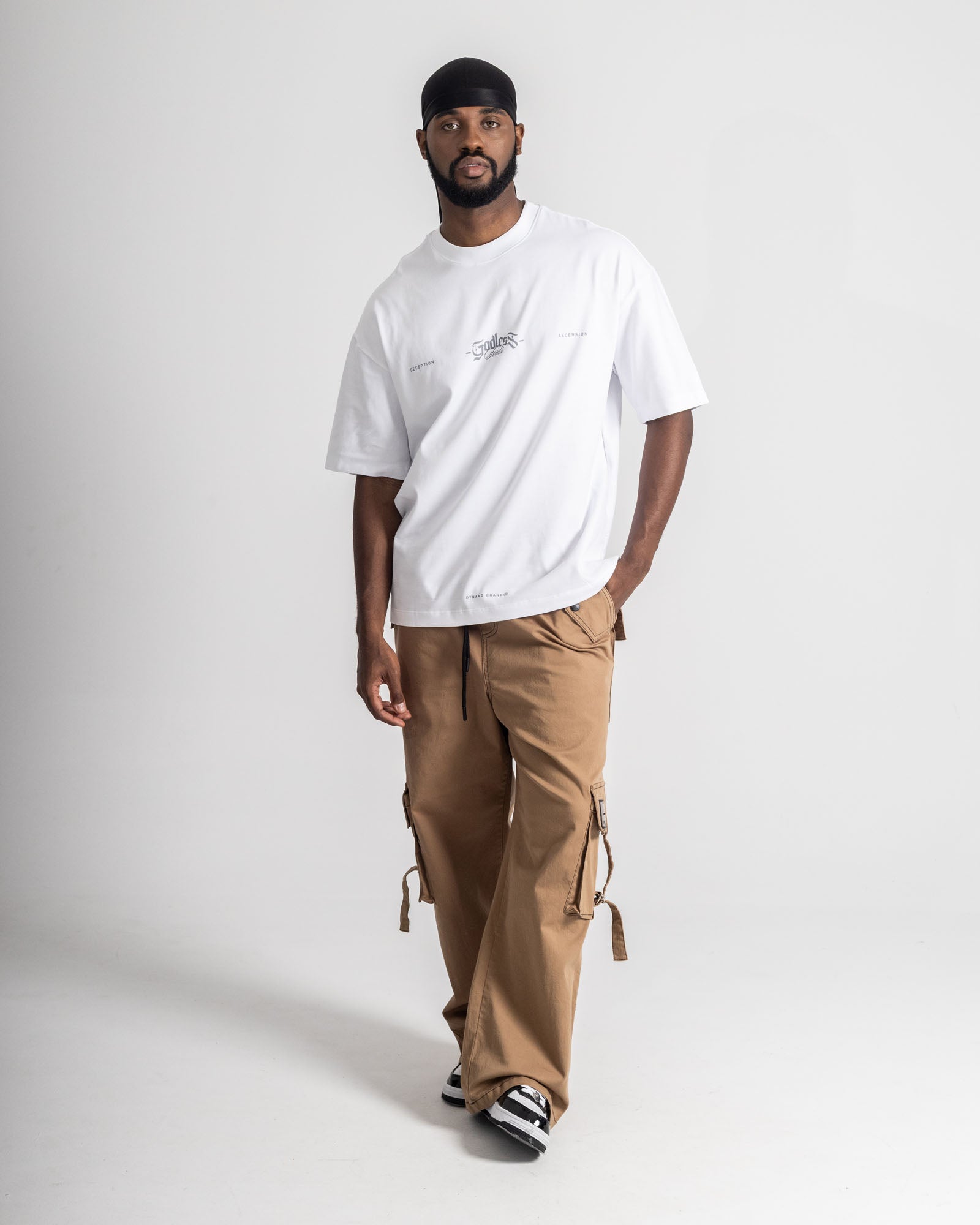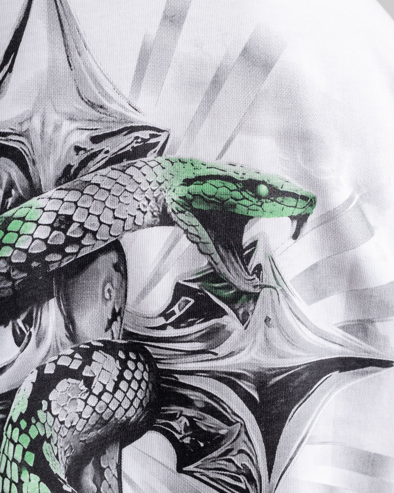 Camiseta oversize de base textil premium, con caída pesada y fit amplio para un look street. Destaca por su gráfico full back de alto impacto y detalle frontal minimal, pensada para quienes rompen reglas y marcan territorio. Costuras reforzadas y acabado suave que eleva...