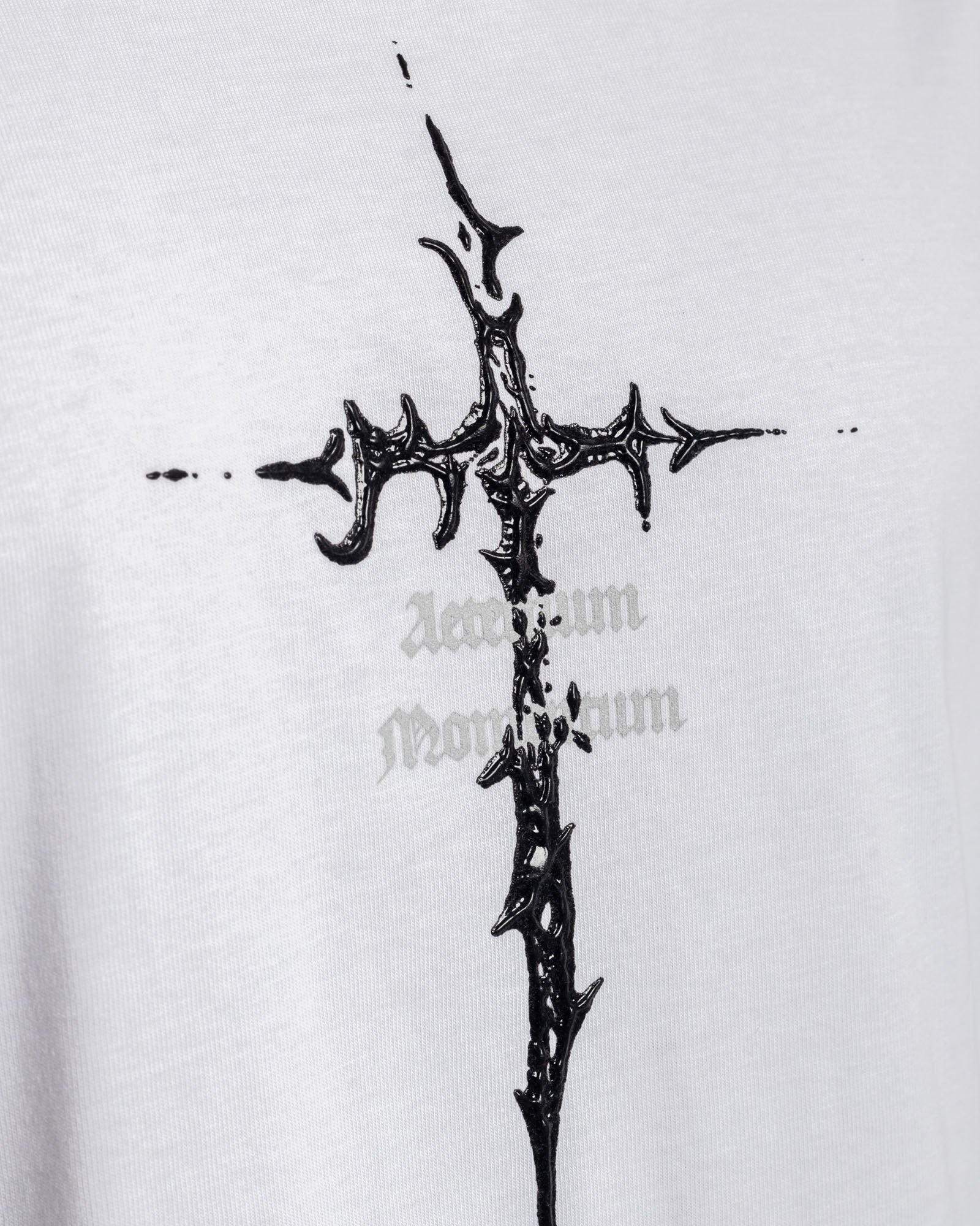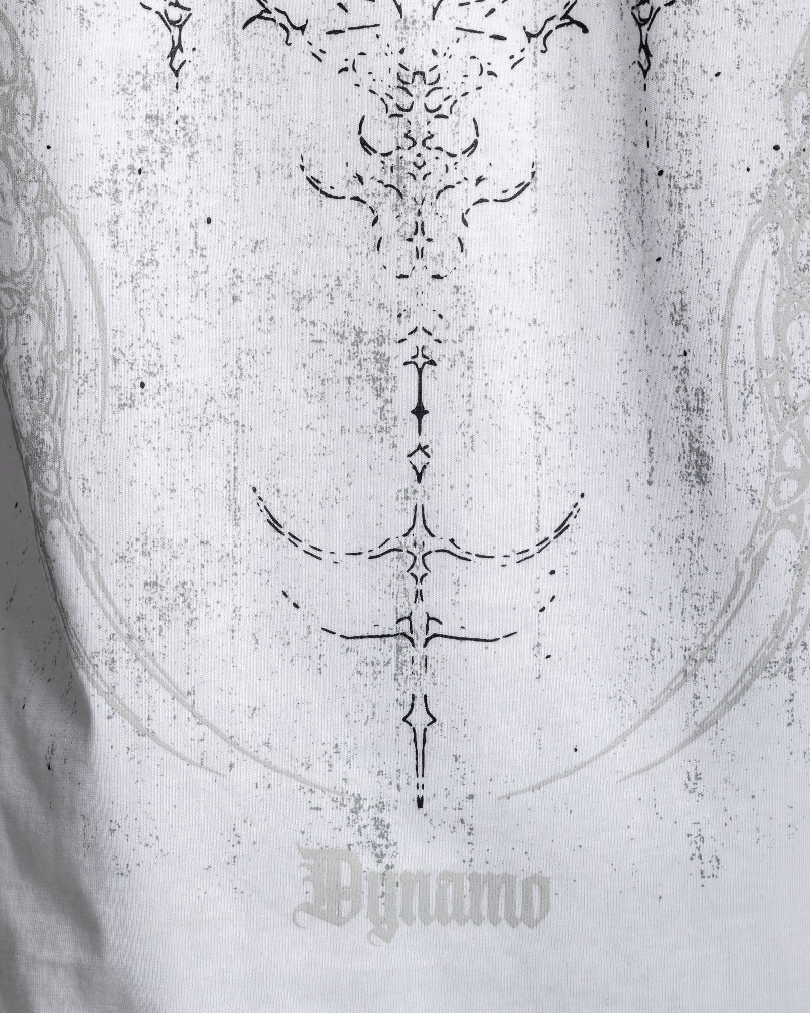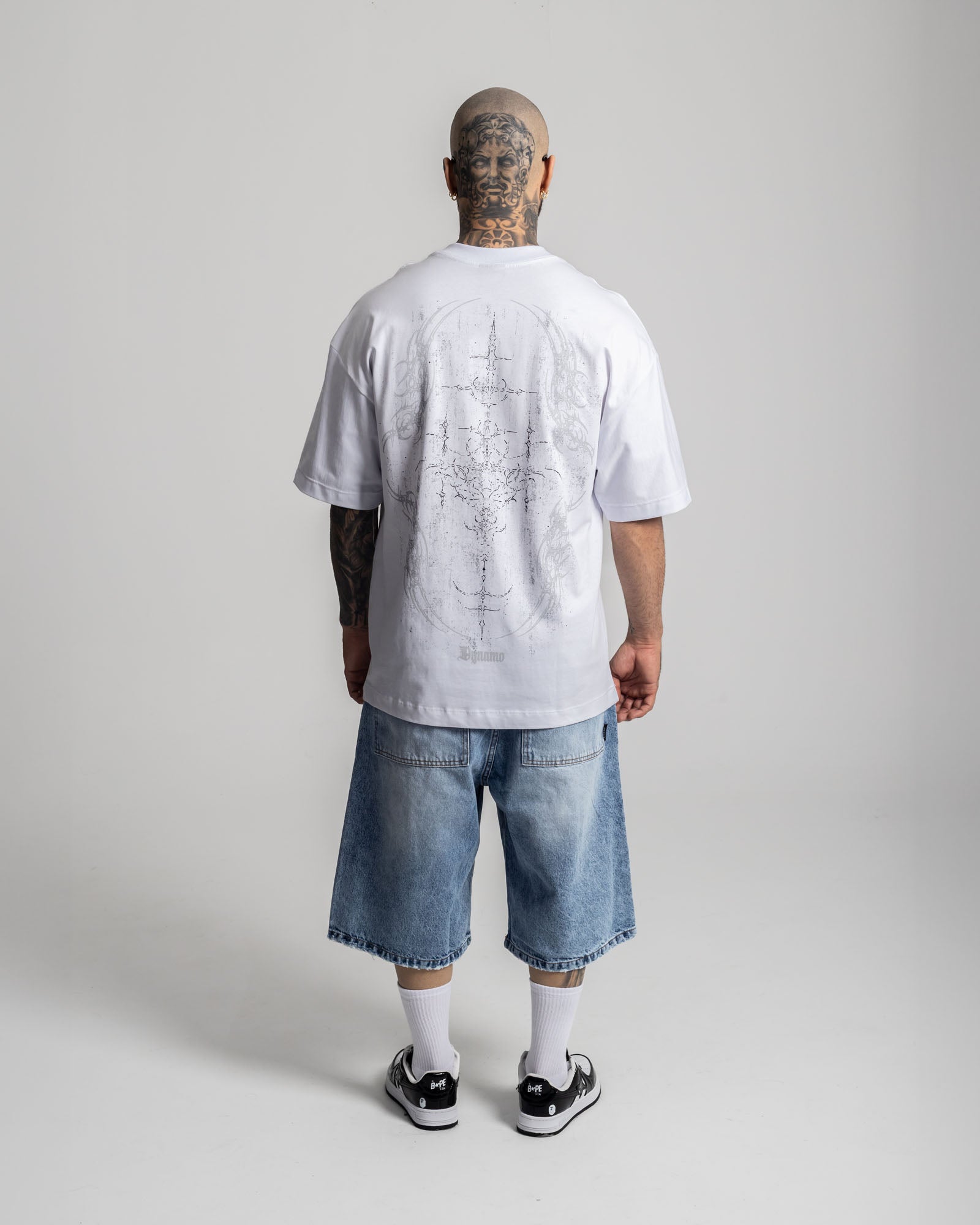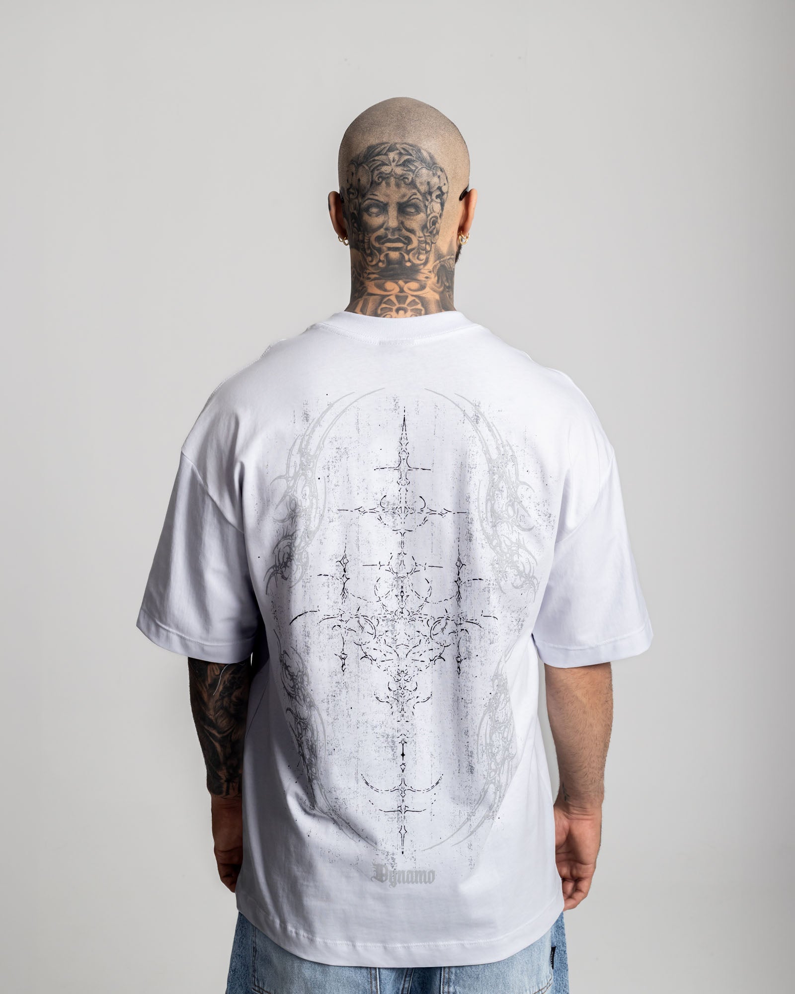 Camiseta oversize de presencia pesada y lectura frontal limpia, construida para que el impacto real esté en la espalda. La gráfica de inspiración oscura convierte la prenda en un manifiesto visual: poder, ruptura y calle sin censura. Corte amplio, hombro caído y caída recta...