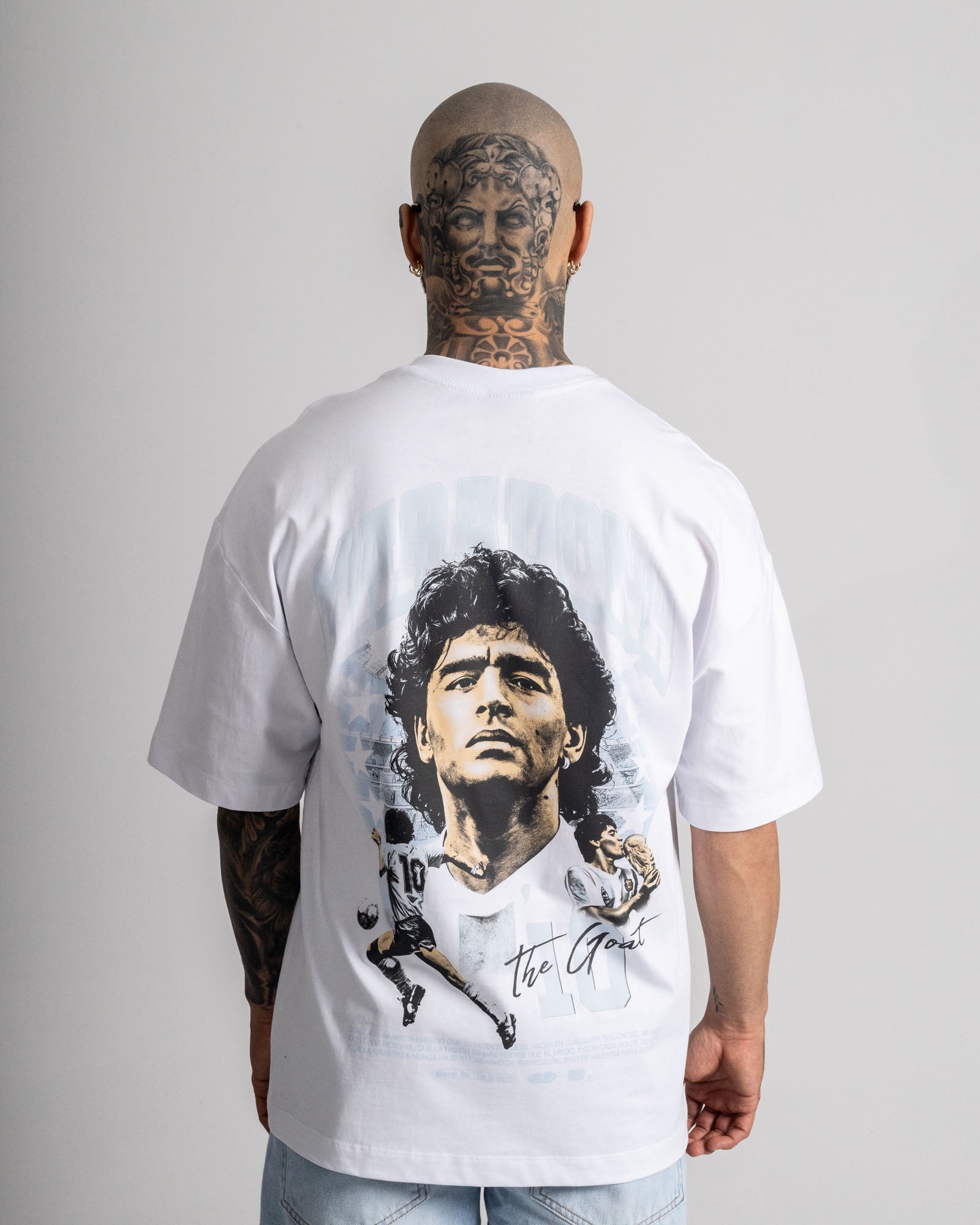 Camiseta oversize de silueta amplia, confeccionada en algodón de alto gramaje que aporta estructura, suavidad y caída premium. Diseño protagonista en la espalda con gráfica icónica de inspiración legendaria y detalles sutiles en el frente. Una prenda statement pensada para romper reglas, dominar el fit y elevar el streetwear a otro nivel.