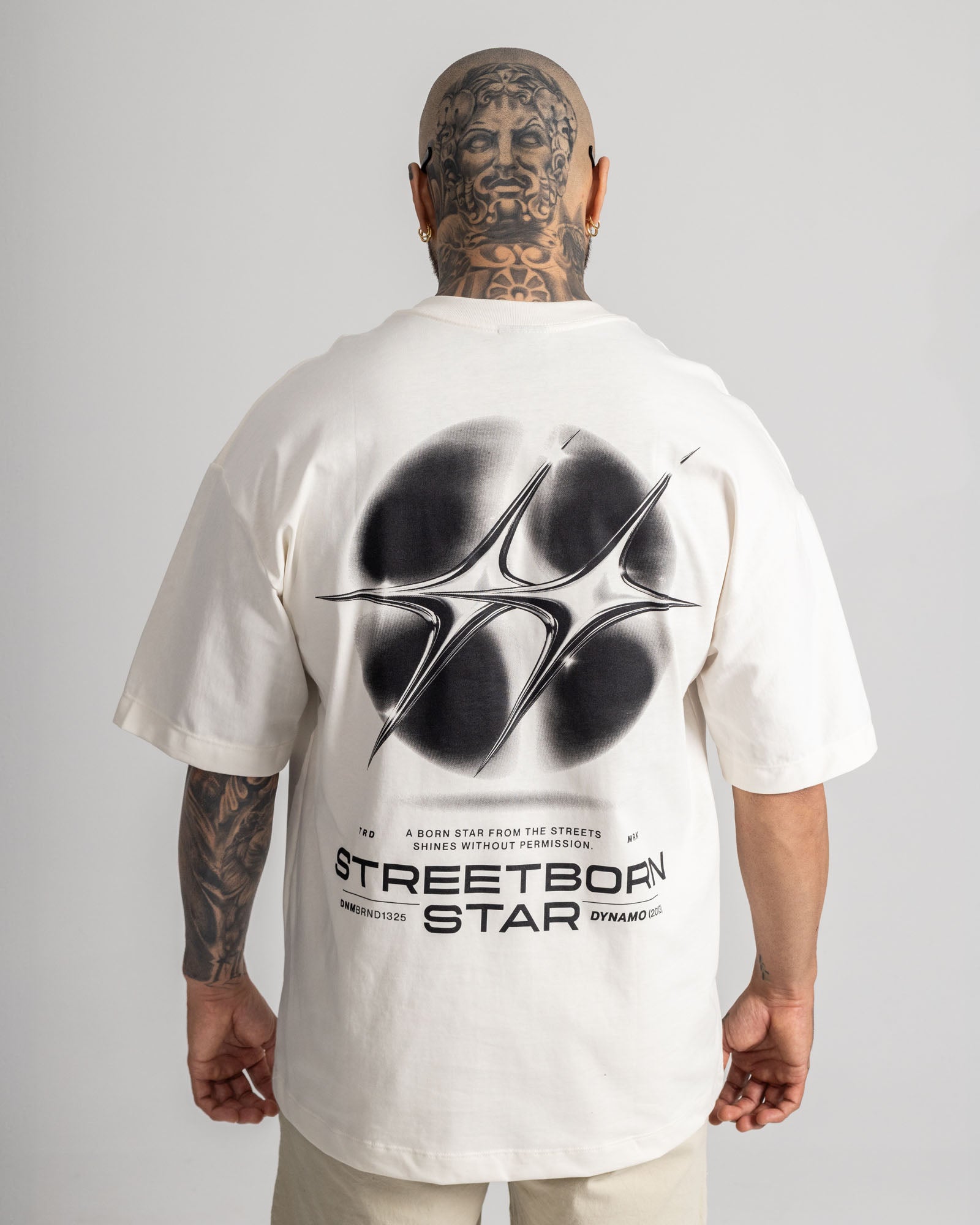Camiseta oversize en algodón de alta calidad, con silueta amplia y caída pesada para un fit urbano contundente. Presenta gráfico Streetborn Star con diseño minimal al frente y estampado protagonista en la espalda. Costuras reforzadas, cuello rib resistente y acabado premium para un look sólido y cómodo.