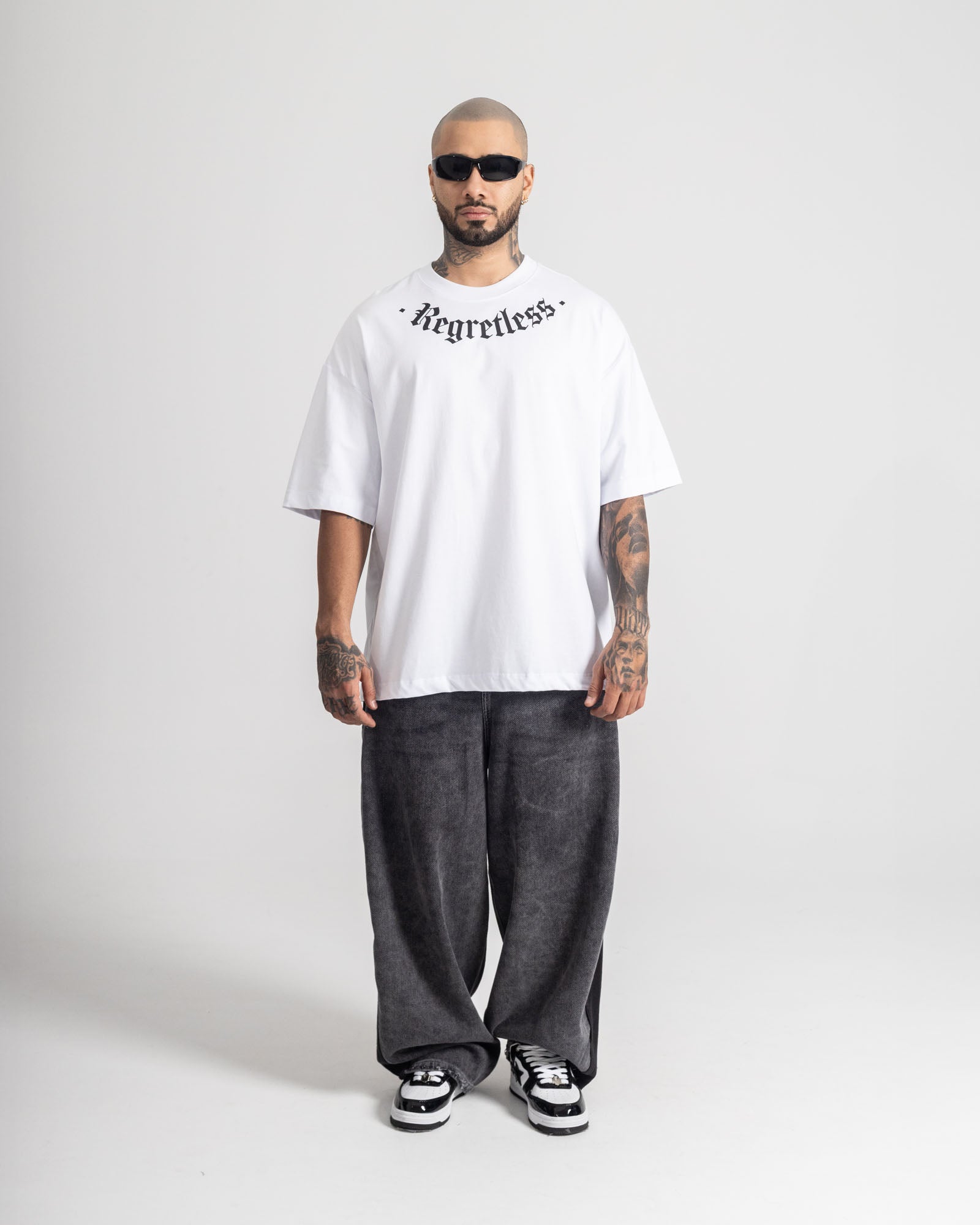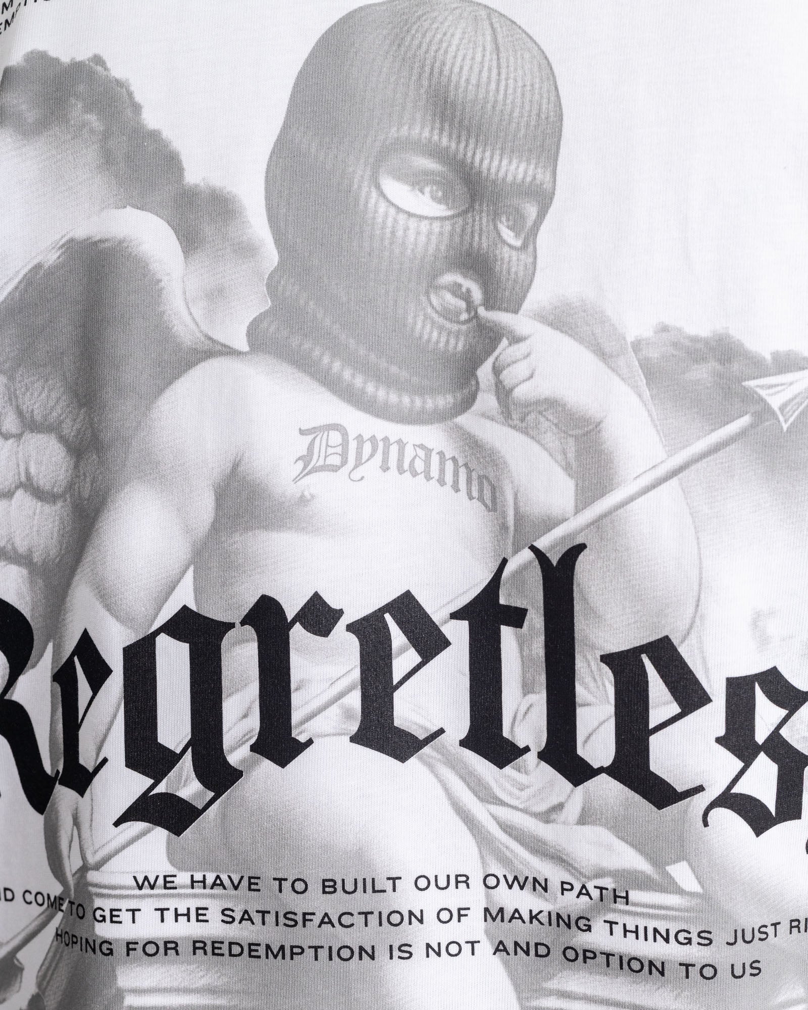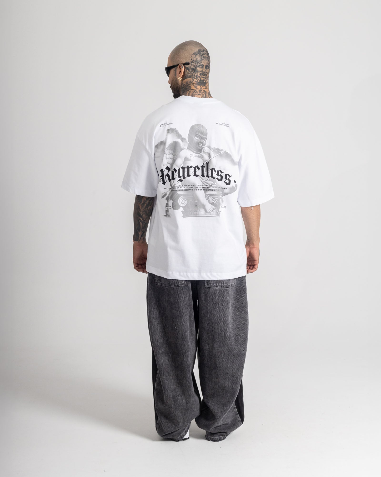 Camiseta oversize en base algodón de tacto suave y caída pesada, diseñada para un fit amplio y cómodo. Destaca por su gráfica trasera de alto impacto con inspiración clásica reinterpretada desde el streetwear, acompañada de detalles tipográficos premium y print frontal minimal. Una pieza que mezcla arte, actitud y calle en una sola silueta.