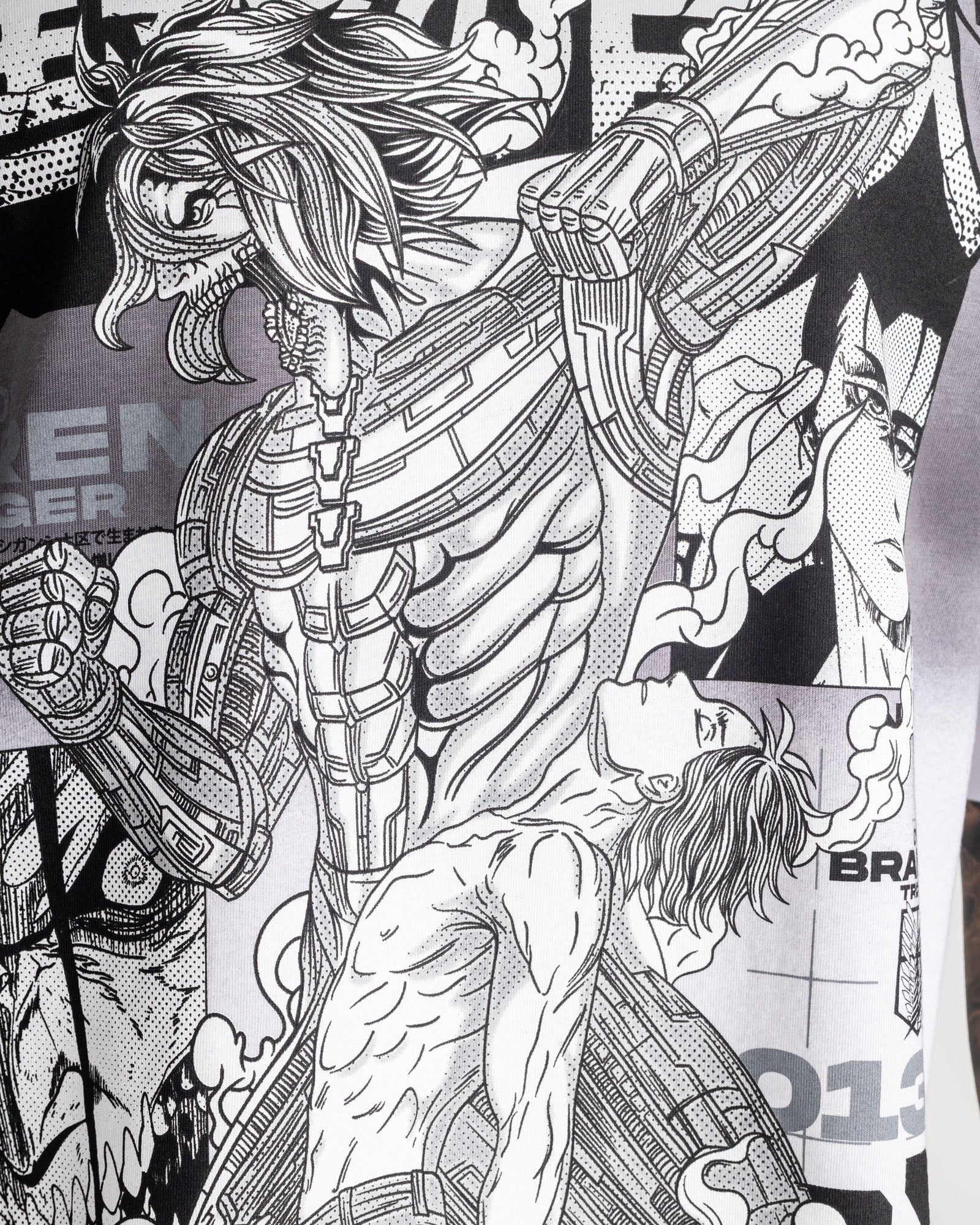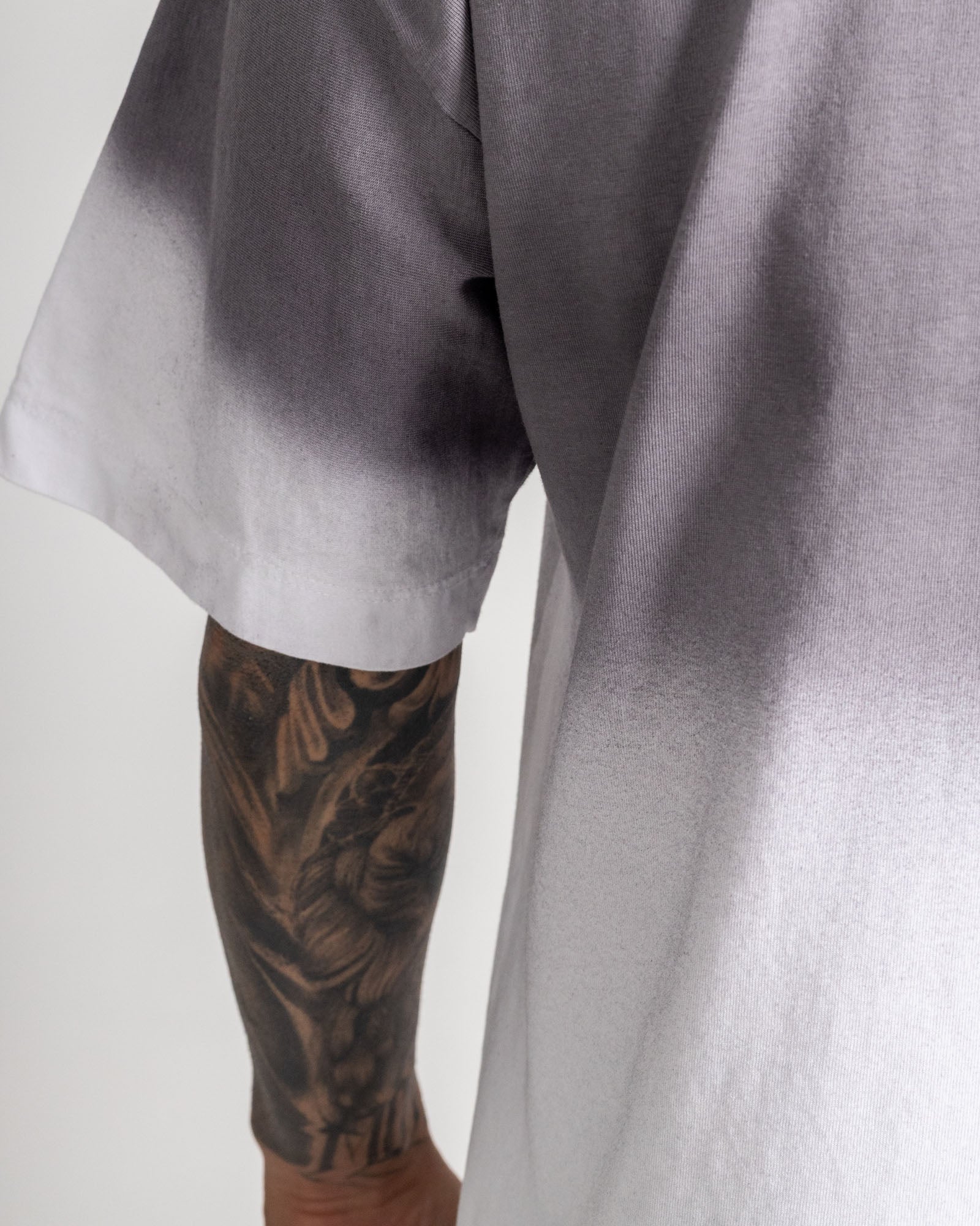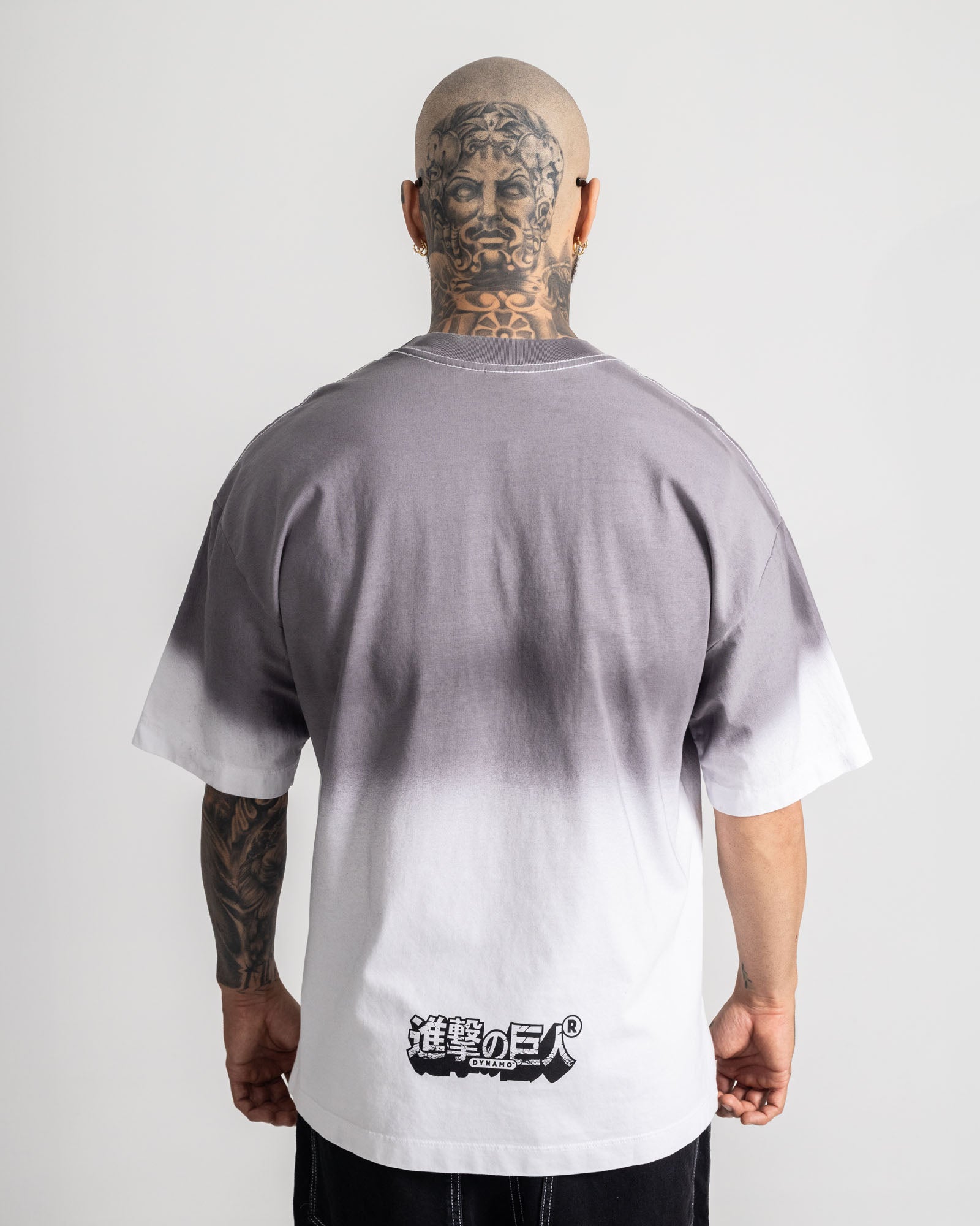 Camiseta oversize con silueta amplia y caída pesada, diseñada para destacar en la calle. Confeccionada en algodón de alto gramaje, suave al tacto y resistente al uso diario. Su degradado gris a blanco le da un look crudo y urbano, mientras el gráfico frontal estilo anime/manga eleva la pieza con identidad fuerte y actitud rebelde. Costuras reforzadas, cuello rib sólido y fit relajado para un flow cómodo pero dominante.