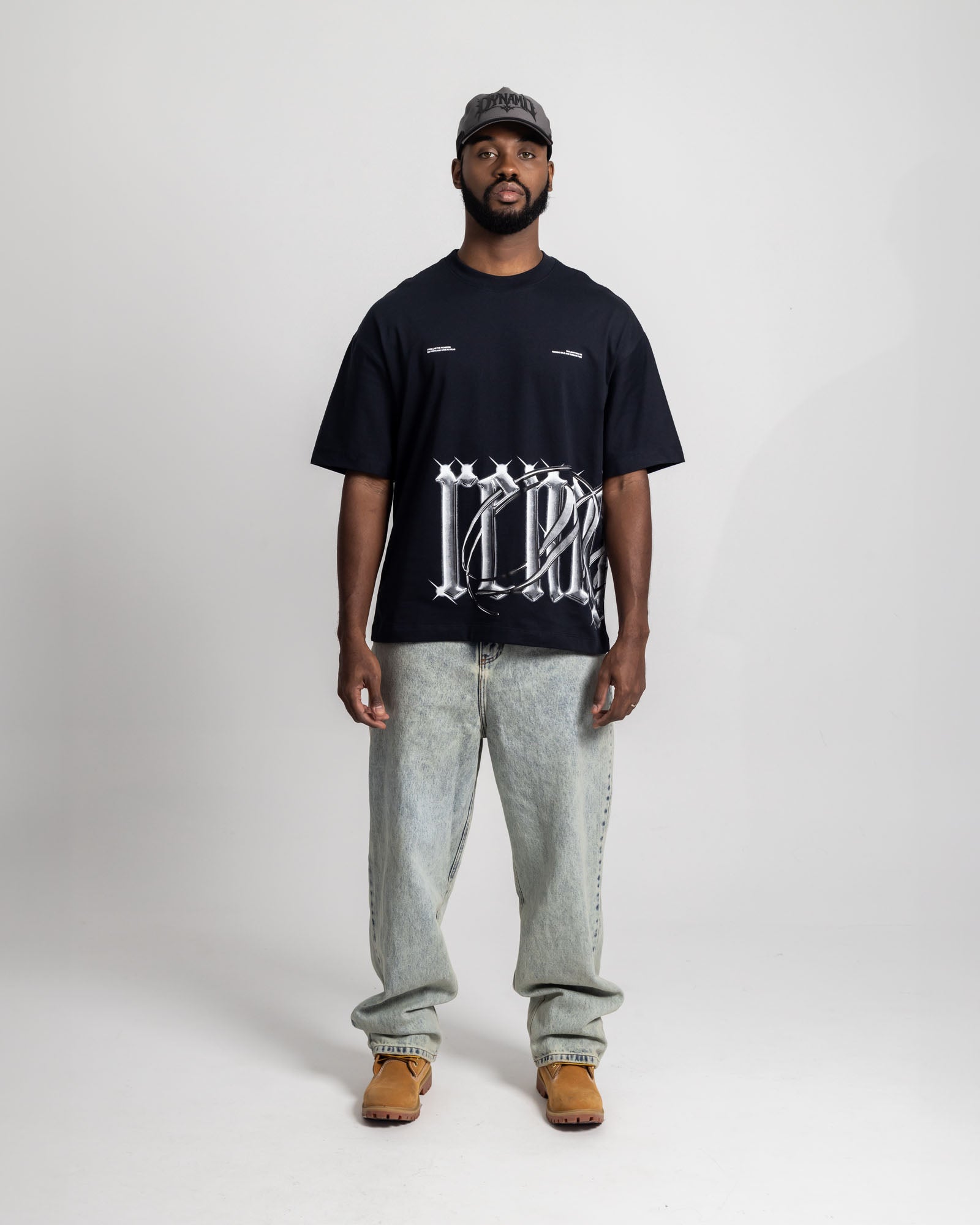 Camiseta Boxy fit. Su diseño juega con gráficos metálicos y mensajes sutiles que hablan de fuerza, identidad y actitud. El fit suelto le da ese aire relajado pero firme.