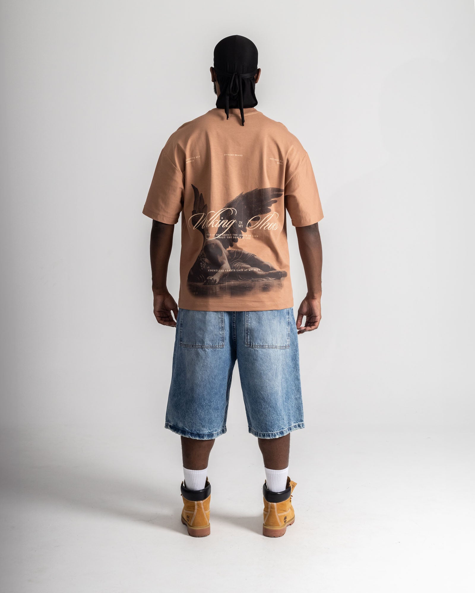 Camiseta oversize de fit amplio y caída relajada, confeccionada en base textil suave y resistente que garantiza comodidad en el día a día. Diseño gráfico central de inspiración clásica con alas y tipografía statement, combinado con detalles tipográficos minimal que elevan el concepto street-art de la prenda. Ideal para outfits urbanos con actitud fuerte y estética rebel.