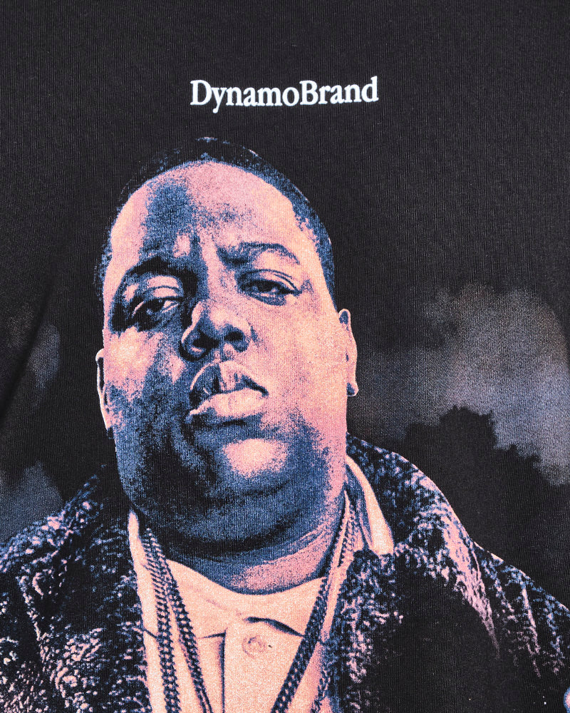 Camiseta oversize negra en algodón de alto gramaje, silueta amplia y caída estructurada que impone presencia. Estampado frontal gráfico de alto impacto con estética hip-hop urbana y contraste vibrante que resalta sobre la base textil premium. Cuello redondo reforzado, costuras sólidas y acabado limpio que garantiza durabilidad.