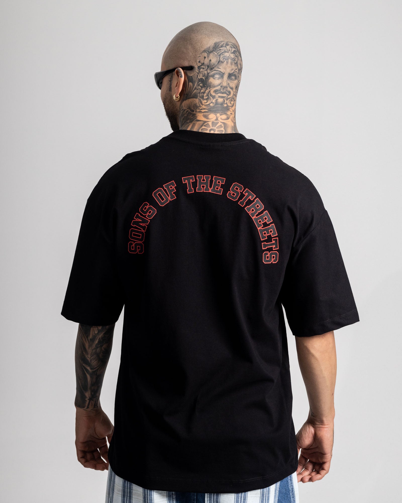 Camiseta boxy fit diseñada para imponer respeto. Silueta amplia, cuello en V con rib deportivo y gráfico frontal de alto impacto que grita calle, juego y poder. Inspirada en la energía cruda del asfalto y la estética de las ligas urbanas. Una pieza hecha para...