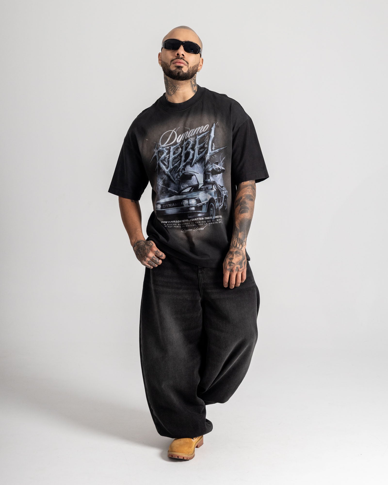 Camiseta oversize de actitud rebelde, confeccionada en algodón de alto gramaje para un fit suelto y cómodo. Estampado frontal de alto impacto con estética street–motor, lavado oscuro que aporta carácter y acabado premium. Una pieza hecha para romper reglas y marcar presencia en la calle.