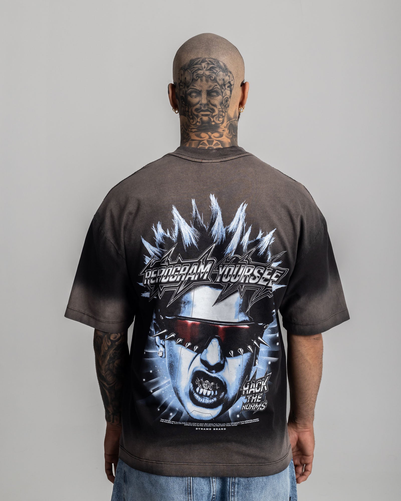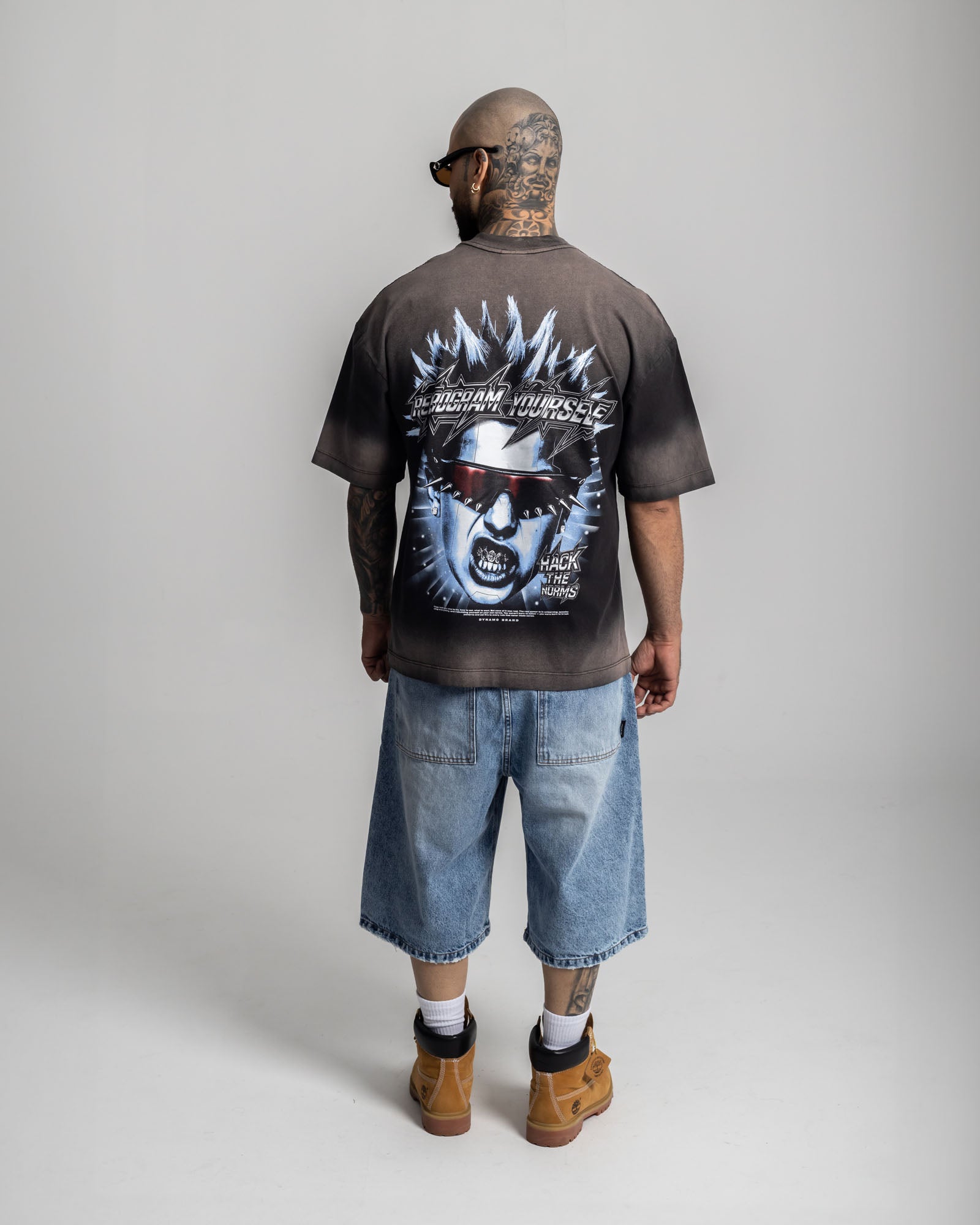 Camiseta oversize de alto impacto con acabado lavado y gráfico trasero protagonista. Su diseño rebelde y disruptivo rompe las reglas con una estética dark street, pensada para quienes no siguen norma. Confeccionada en base textil premium, caída pesada y fit amplio que eleva cualquier outfit urbano.
