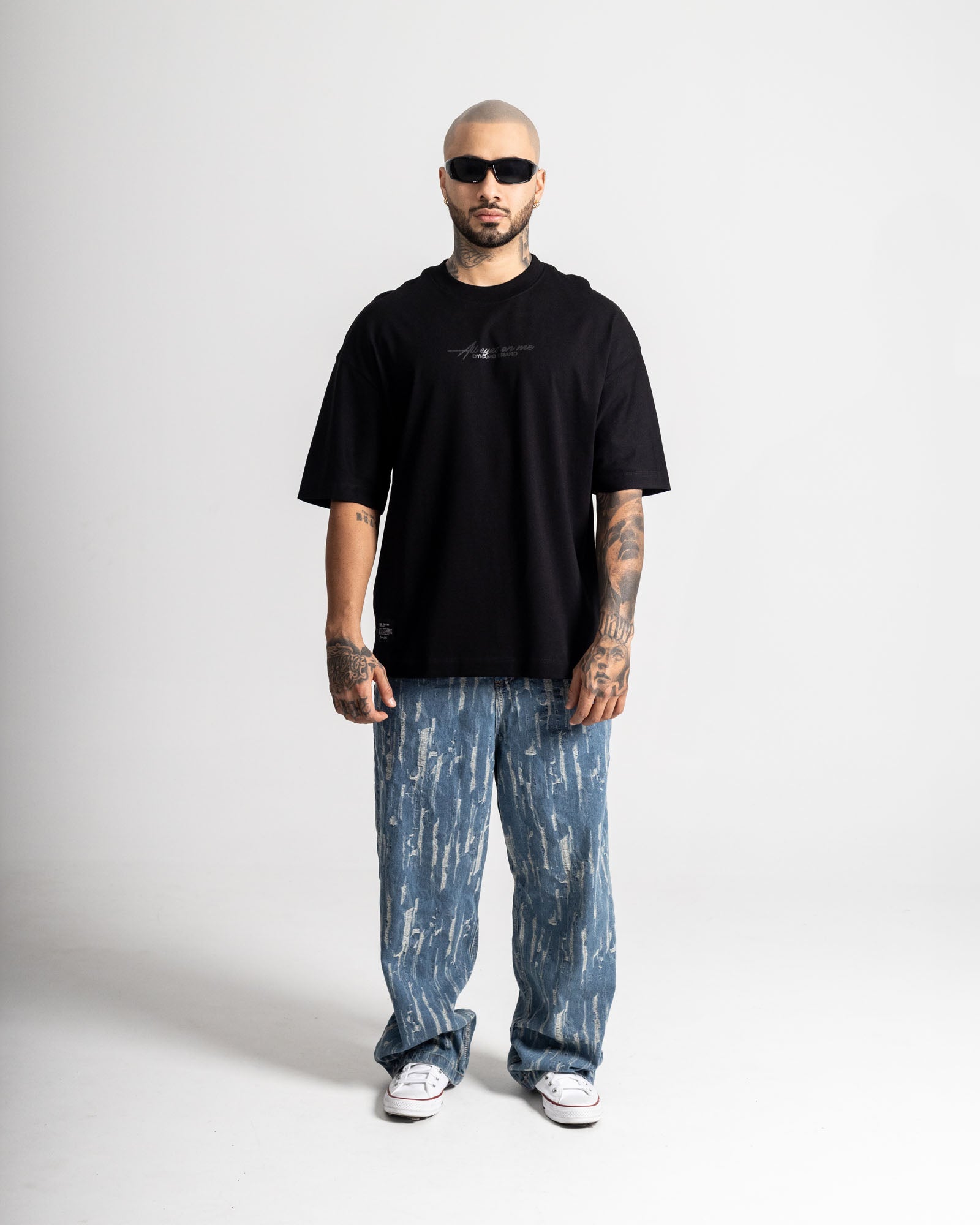 Camiseta oversize de fit amplio y caída pesada, confeccionada en algodón de alta calidad para máxima comodidad y durabilidad. Diseño gráfico posterior de alto impacto con inspiración urbana y estética hip-hop, combinado con detalle frontal minimalista. Una prenda statement pensada para romper esquemas y llevar el streetwear al siguiente nivel.