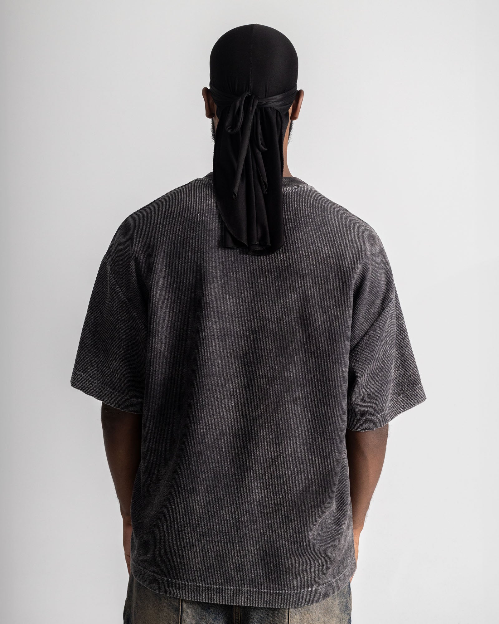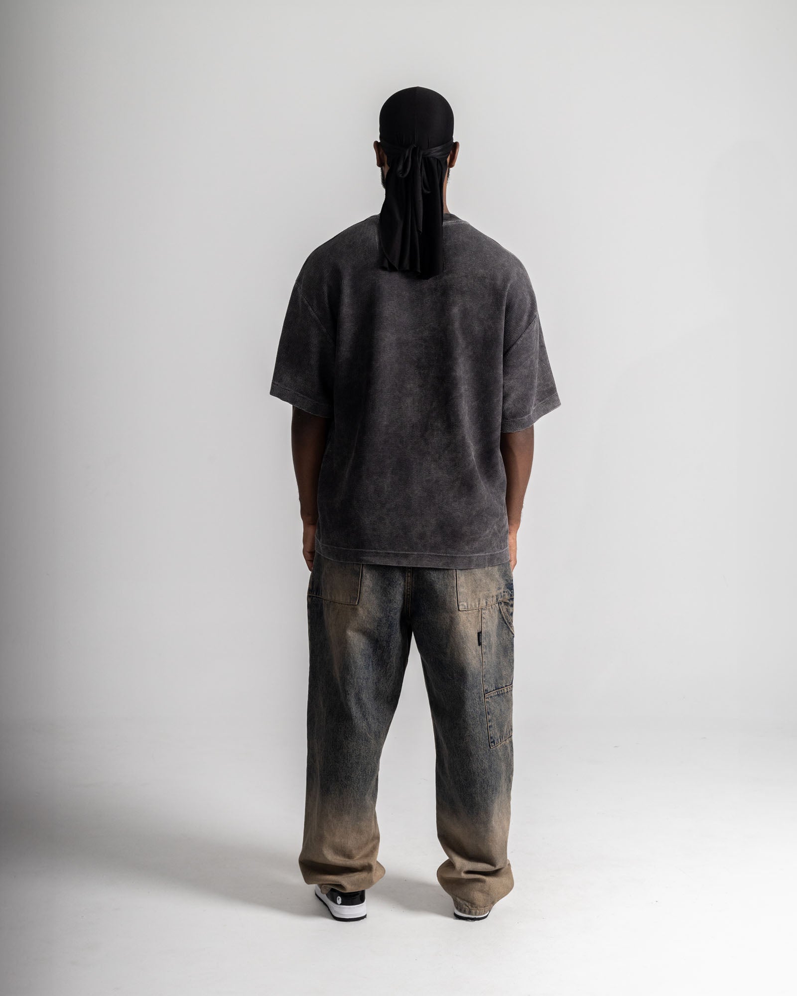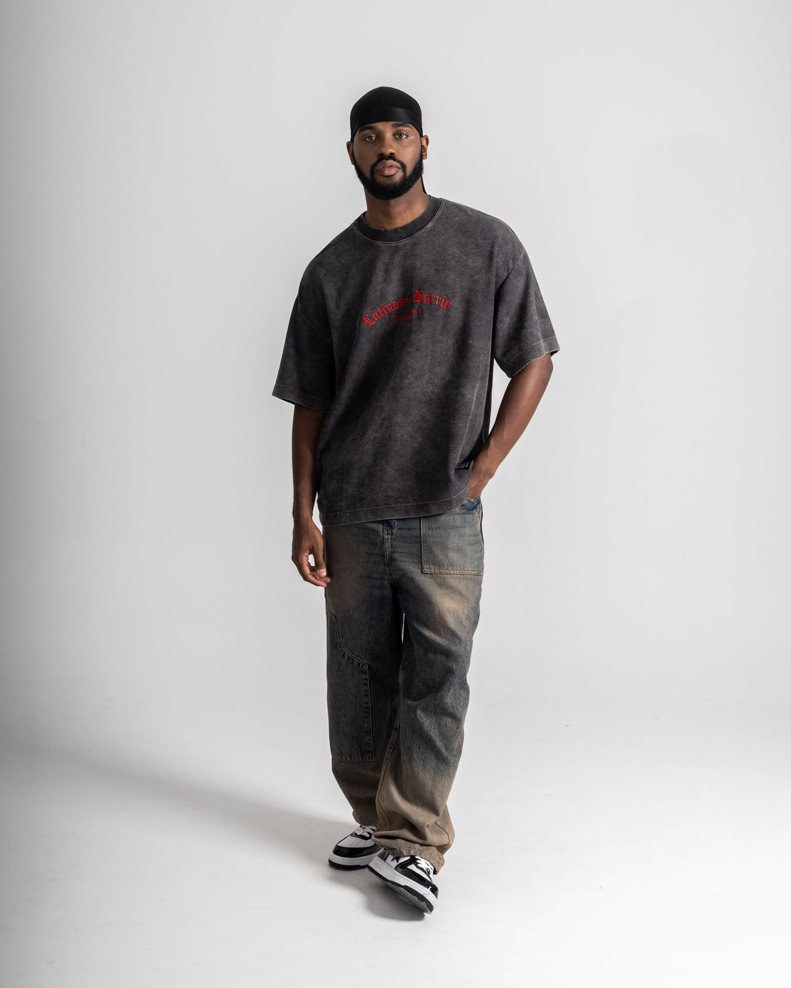 Camiseta oversize de silueta relajada, confeccionada en algodón de alta calidad con acabado lavado que le da un look urbano y auténtico. Destaca por su bordado frontal en contraste, cuello reforzado y caída pesada, perfecta para un fit street sólido y cómodo.