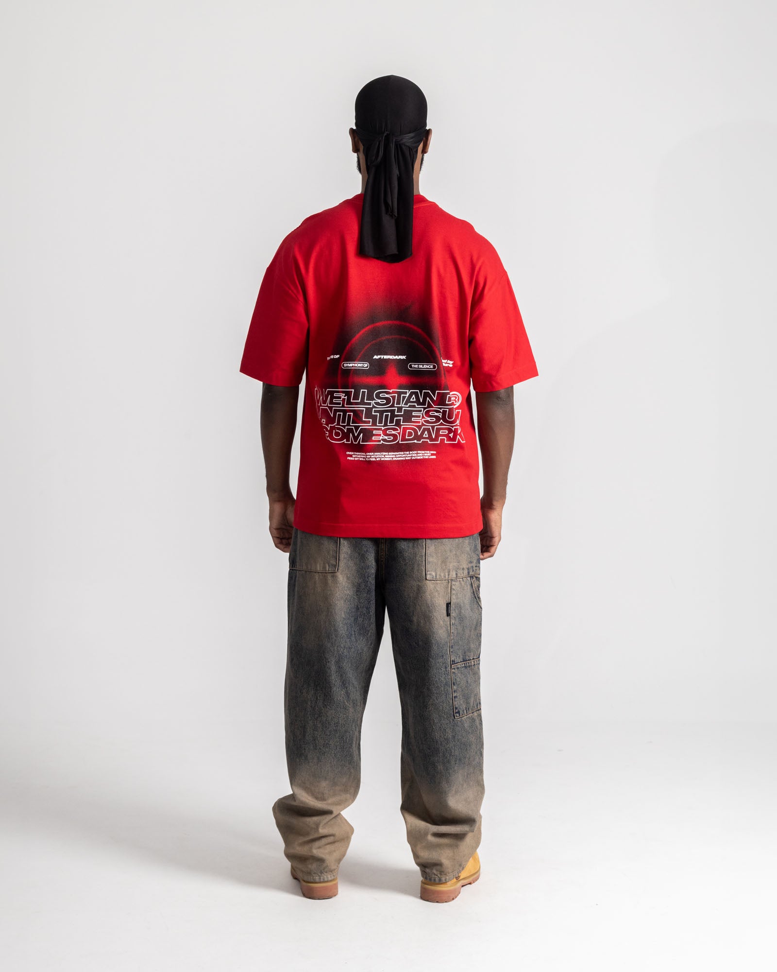 Camiseta oversize Dynamo Brand en tono rojo intenso, diseñada para destacar. Confeccionada en algodón de alta calidad, tacto suave y estructura firme, ideal para el día a día. Estampado frontal minimal con logo y gráfica posterior de alto impacto que eleva el look street....