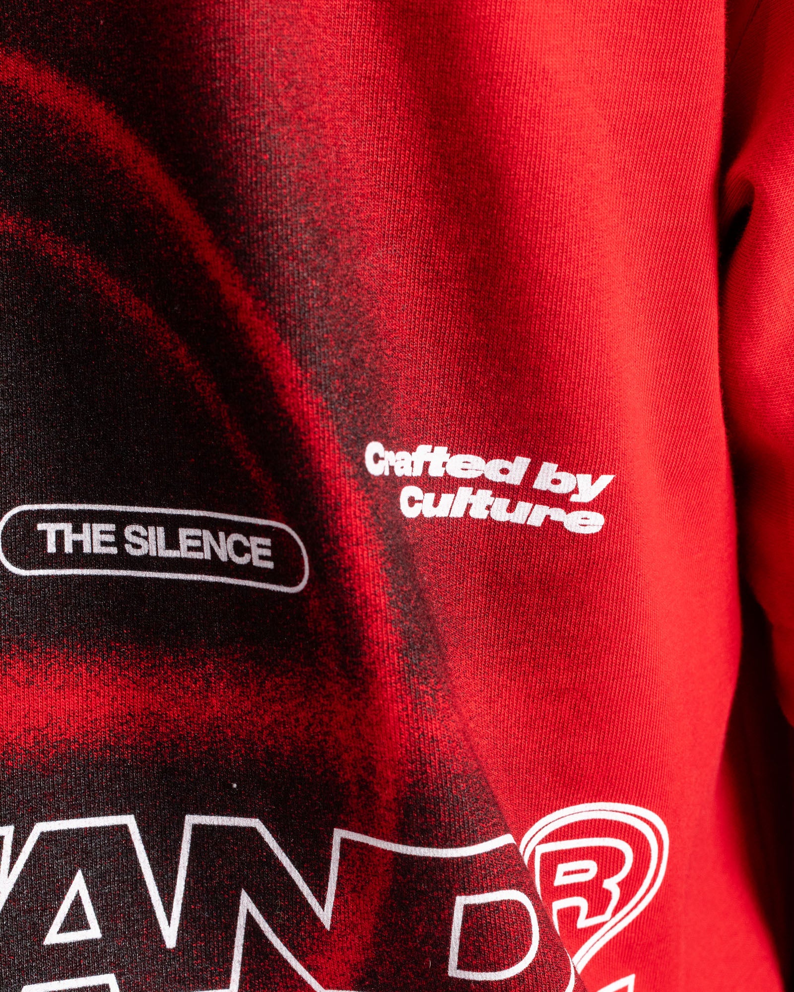 Camiseta oversize Dynamo Brand en tono rojo intenso, diseñada para destacar. Confeccionada en algodón de alta calidad, tacto suave y estructura firme, ideal para el día a día. Estampado frontal minimal con logo y gráfica posterior de alto impacto que eleva el look street. Fit amplio, cuello reforzado y acabados premium para un flow auténtico y urbano.
