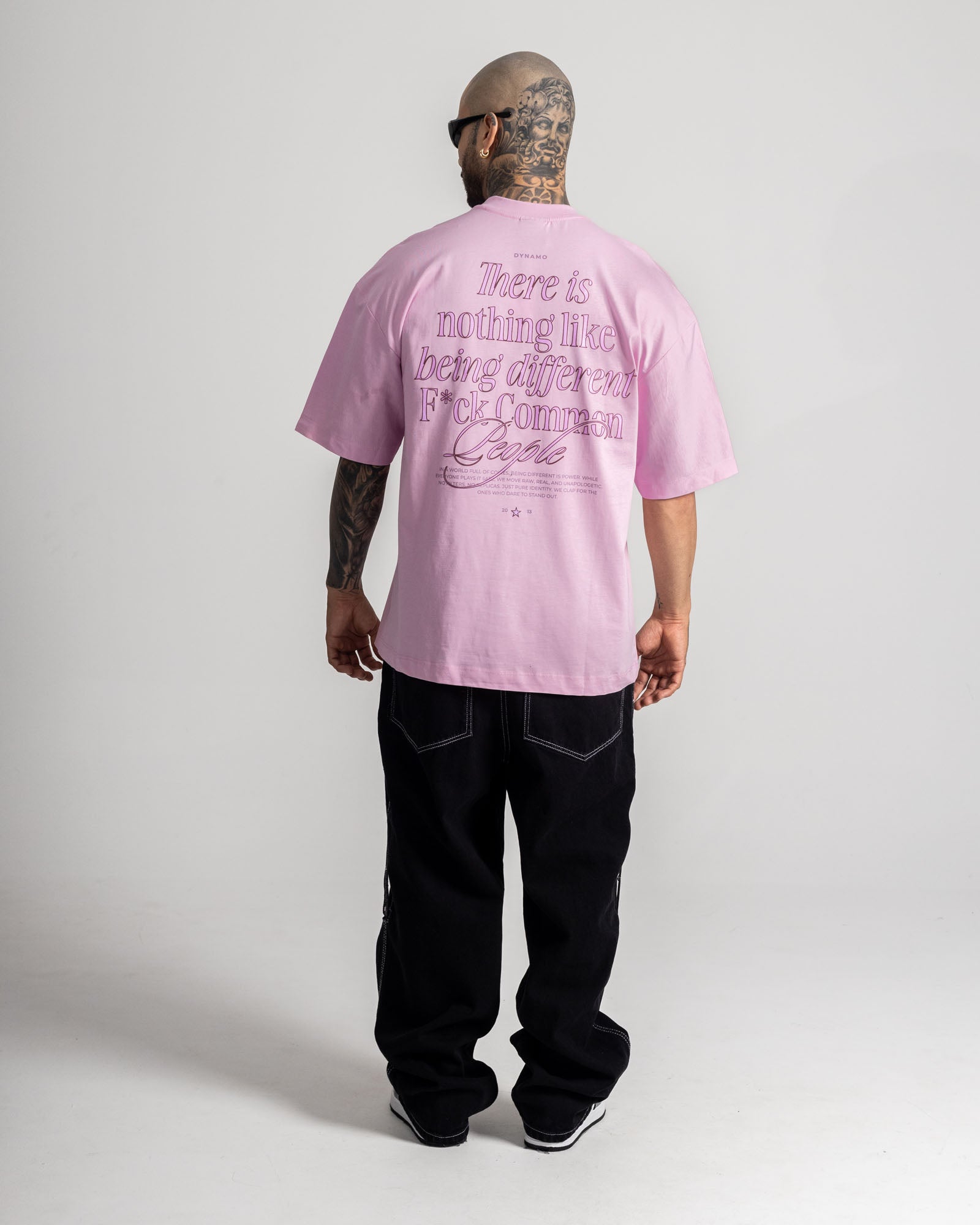 Camiseta oversize en algodón suave de alto gramaje, diseñada para destacar. Silueta amplia, caída pesada y cuello reforzado que mantiene la forma. El mensaje frontal y posterior rompe con lo común y refuerza una actitud clara: no seguir reglas, crear las tuyas.
