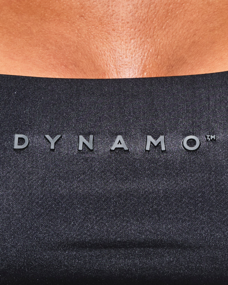 Confeccionado en base textil elástica de alta adaptabilidad, ofrece ajuste seguro, suavidad y libertad de movimiento. Incorpora tiras anchas, escote recto y logo Dynamo en acabado sutil que refuerza identidad sin perder elegancia.