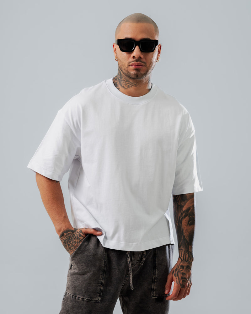 Dos Camisetas básicas silueta Boxy Fit color negro y blanco en tela 100% algodón alto gramaje (200grs), cuello en tela RIB; más suave, elástico y con superficie acanalada. Modelo usa talla L. Se recomienda usar una talla menos en comparación a una talla convencional. Prenda en promoción o descuento no cuenta con cambio por gusto o talla.