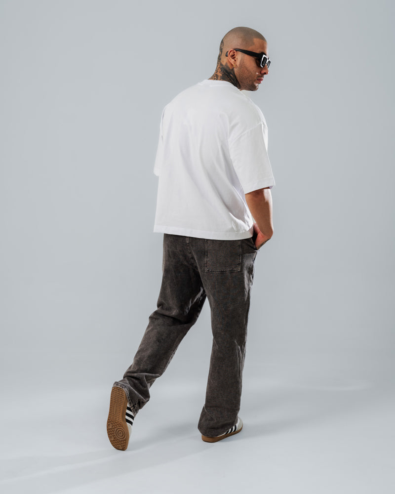 Camiseta boxy fit diseñada para imponer respeto. Silueta amplia, cuello en V con rib deportivo y gráfico frontal de alto impacto que grita calle, juego y poder. Inspirada en la energía cruda del asfalto y la estética de las ligas urbanas. Una pieza hecha para...