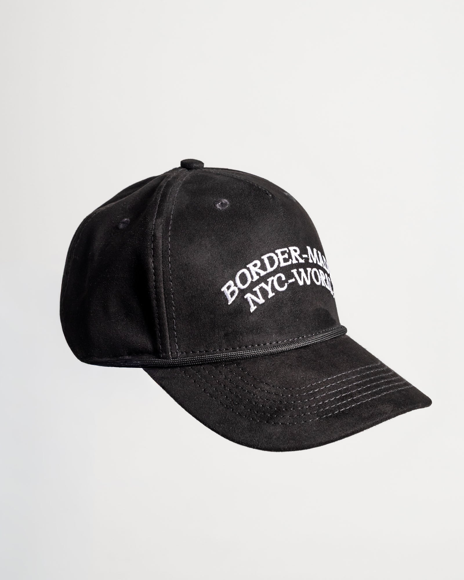 Gorra negra de acabado suave tipo ante con bordados nítidos que cargan identidad en cada costura. Diseño firme, ajuste seguro y presencia inmediata: una pieza pensada para elevar cualquier fit.