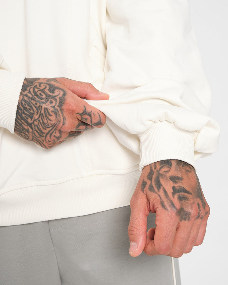 Hoodie oversize construido en algodón de alto gramaje, con tacto firme y caída sólida. El fit amplio da espacio sin perder estructura, mientras la capucha mantiene forma y peso. Branding limpio al frente que equilibra lo minimal con lo street. Es una prenda pensada...