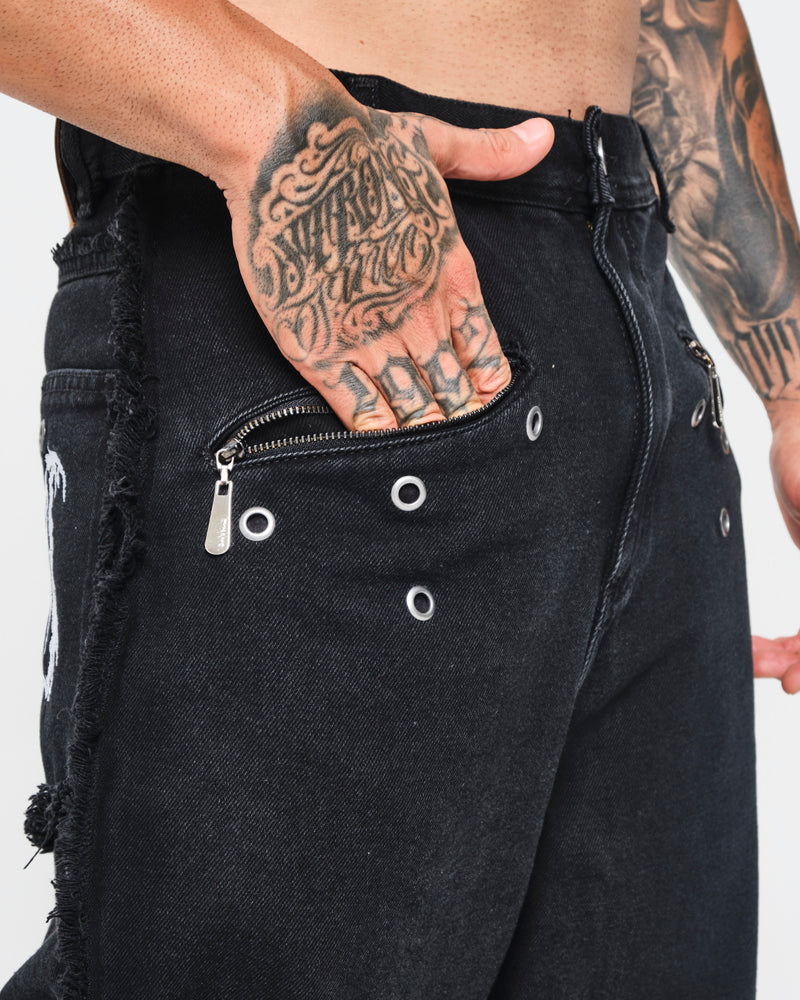 Jea Jean baggy, redefine el streetwear con una silueta amplia de caída pesada y presencia dominante. Diseñado en denim premium resistente, combina textura desgastada tipo acid wash con aplicaciones de estrellas en relieve que elevan el carácter de la prenda. Su fit baggy estructurado, bolsillos...