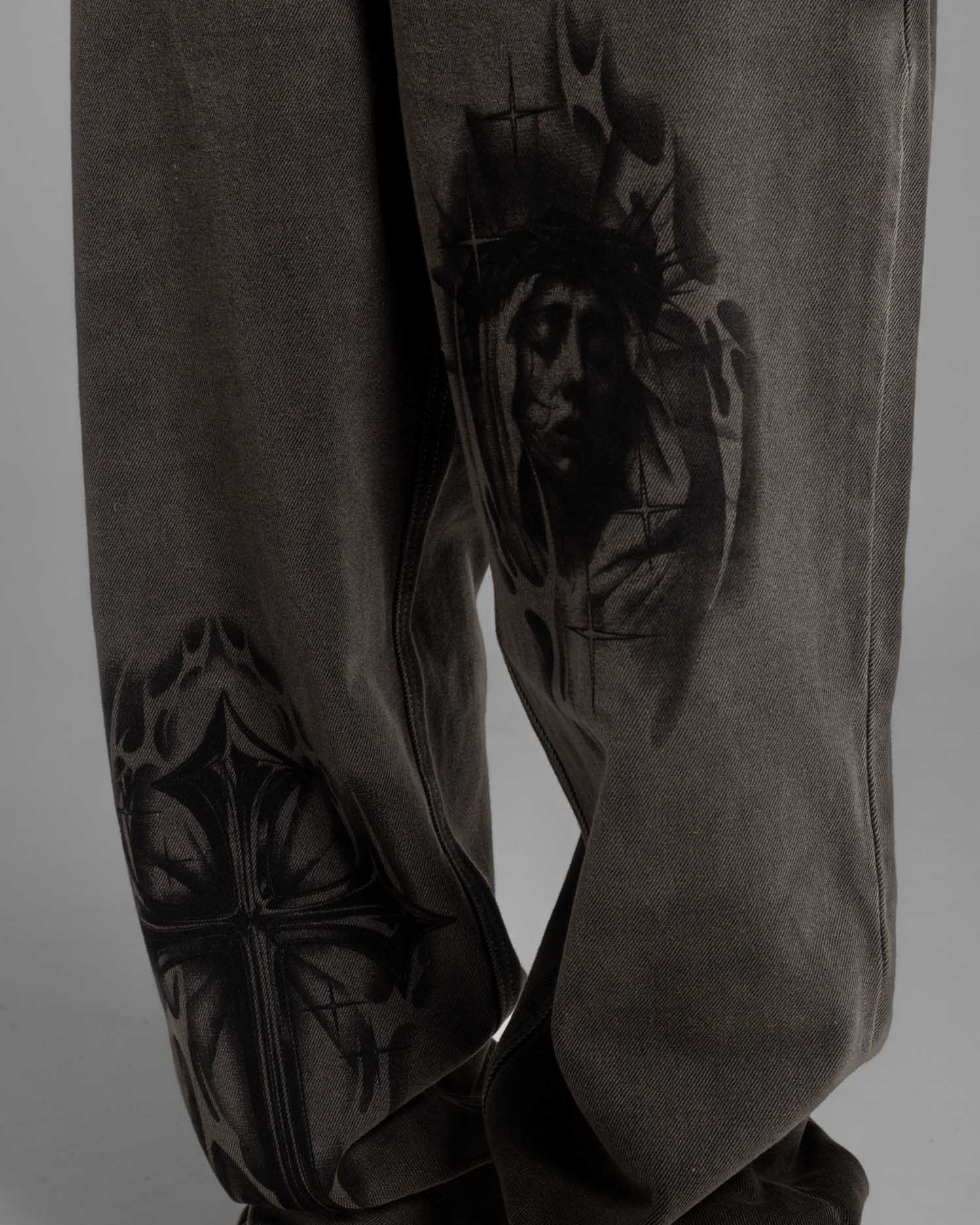 El Jean Baggy Art Code redefine el arte dentro del streetwear. Confeccionado en base textil rígida de alta resistencia, combina estructura, caída firme y una estética vintage. Su estampado frontal tipo “art print” transmite fuerza, rebeldía y carácter, reflejando el espíritu independiente de Dynamo Brand....