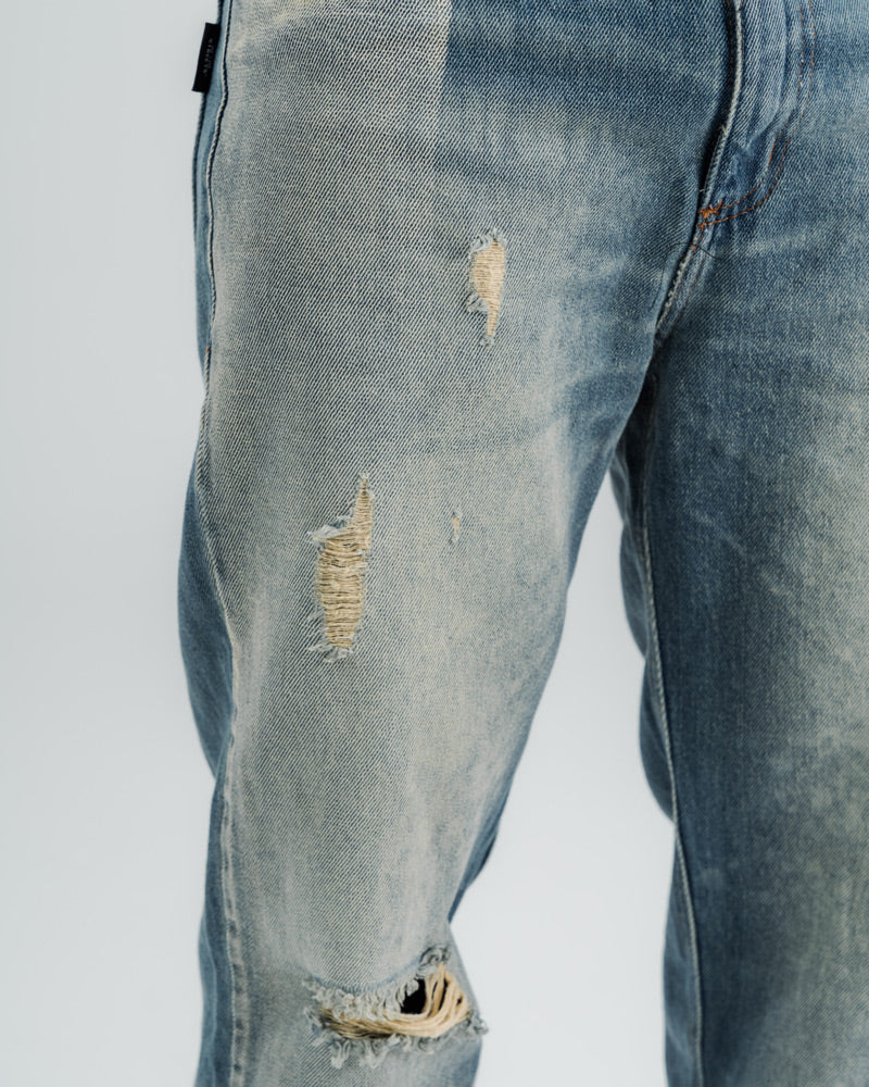 El Jeans Regular Distressed es una pieza que refleja el ADN crudo y urbano de Dynamo. Confeccionado en denim rígido de alta resistencia, presenta un lavado medio con desgastes estratégicos que evocan una estética auténtica y sin esfuerzo. Su corte regular asegura caída limpia y estructura, perfecta para combinar con hoodies o camisetas oversize.