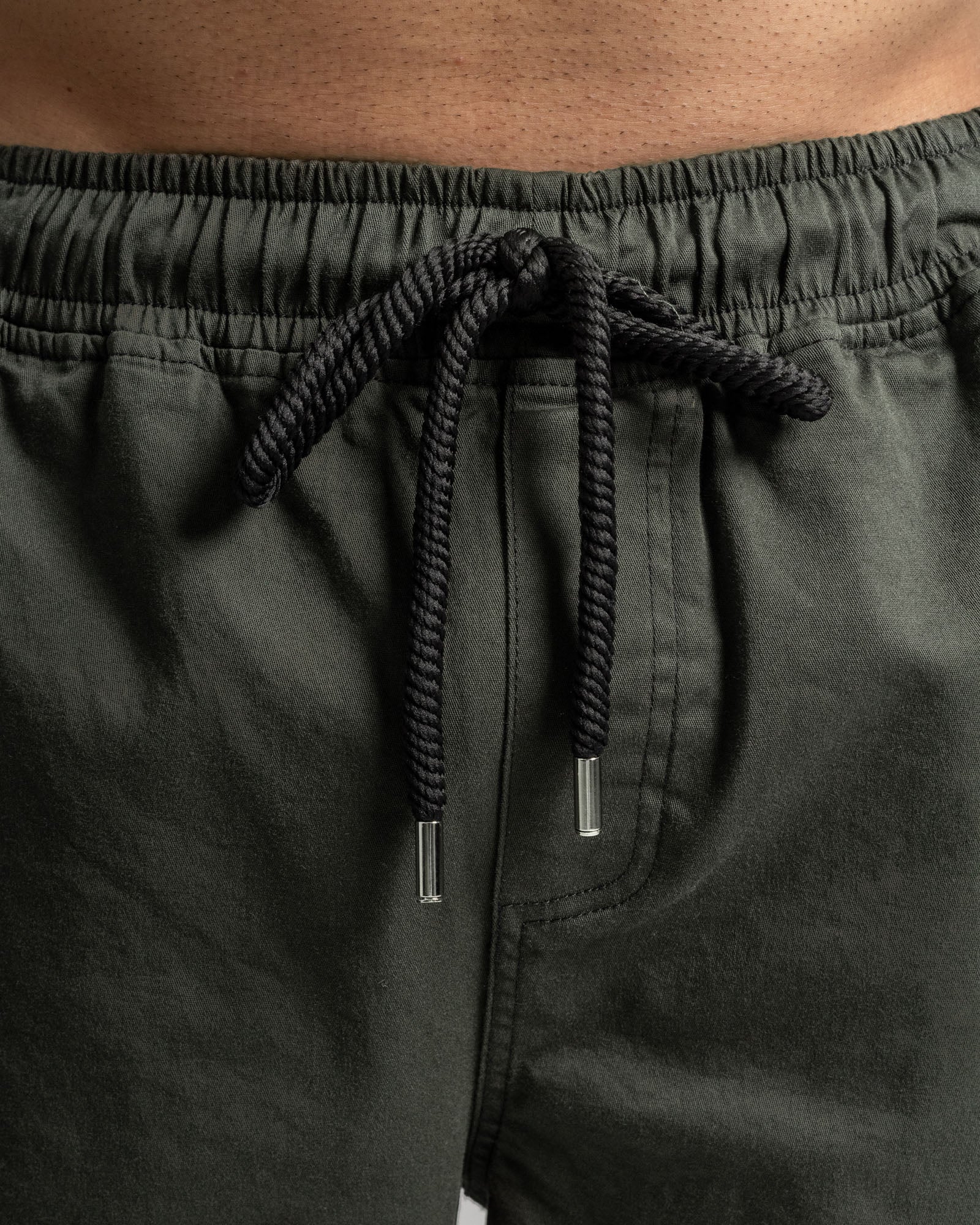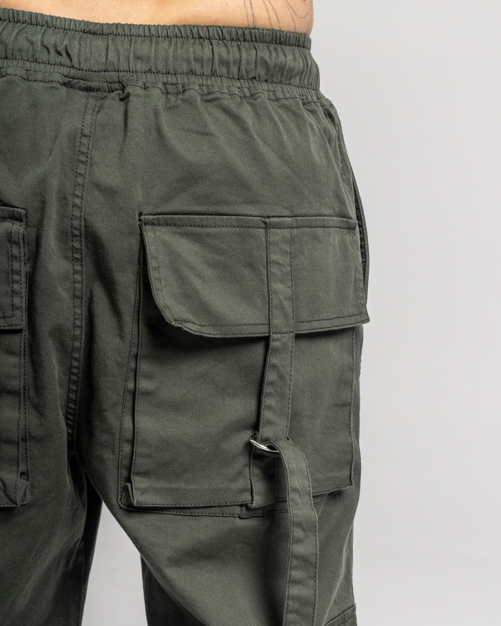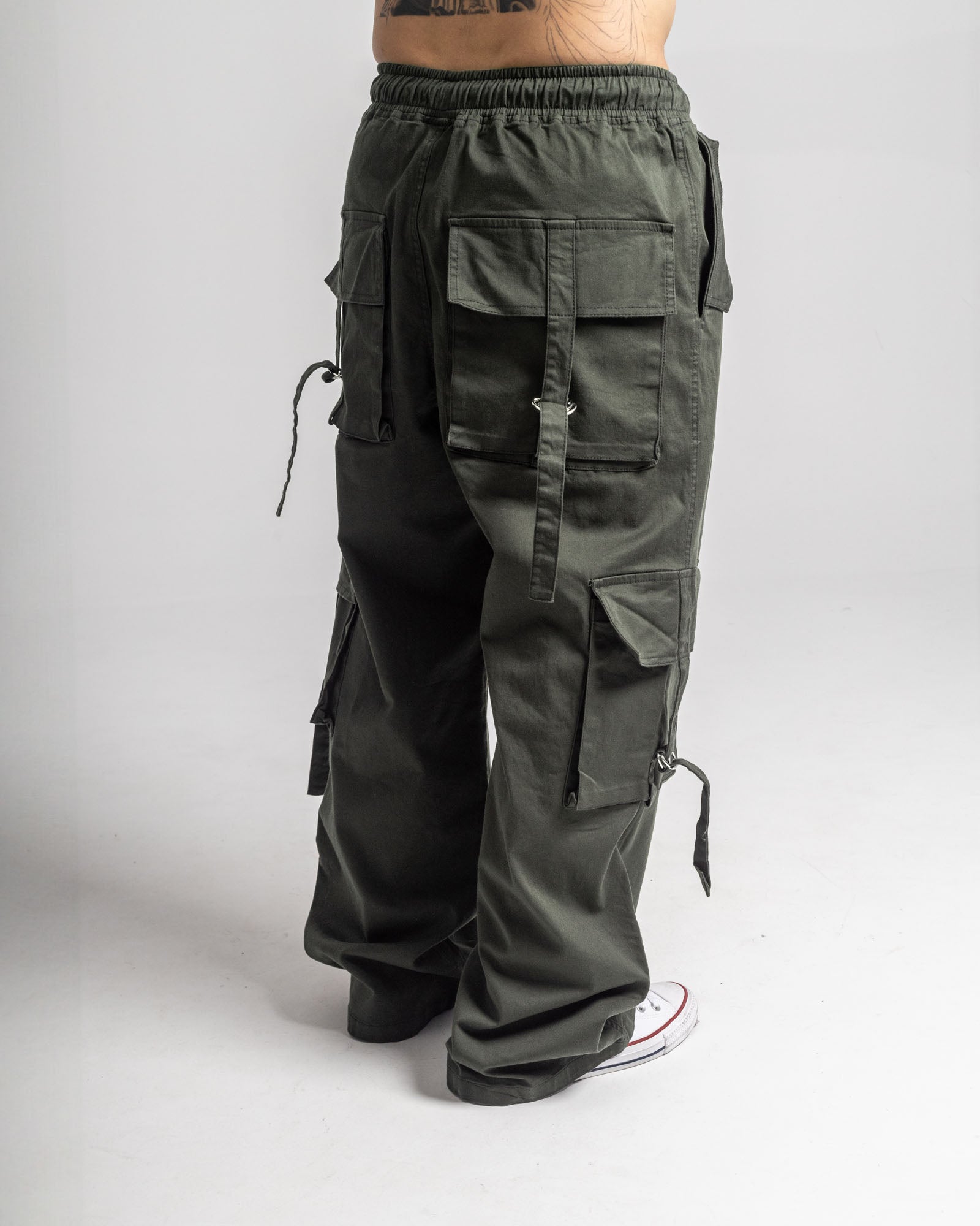 Jogger cargo Verde Militar confeccionado en base textil resistente y de alto gramaje, diseñado para el movimiento diario. Cuenta con pretina elástica con cordón ajustable, múltiples bolsillos cargo funcionales con tapas y correas, herrajes metálicos y costuras reforzadas que elevan su estética utilitaria. Un fit urbano que mezcla comodidad, actitud y funcionalidad.