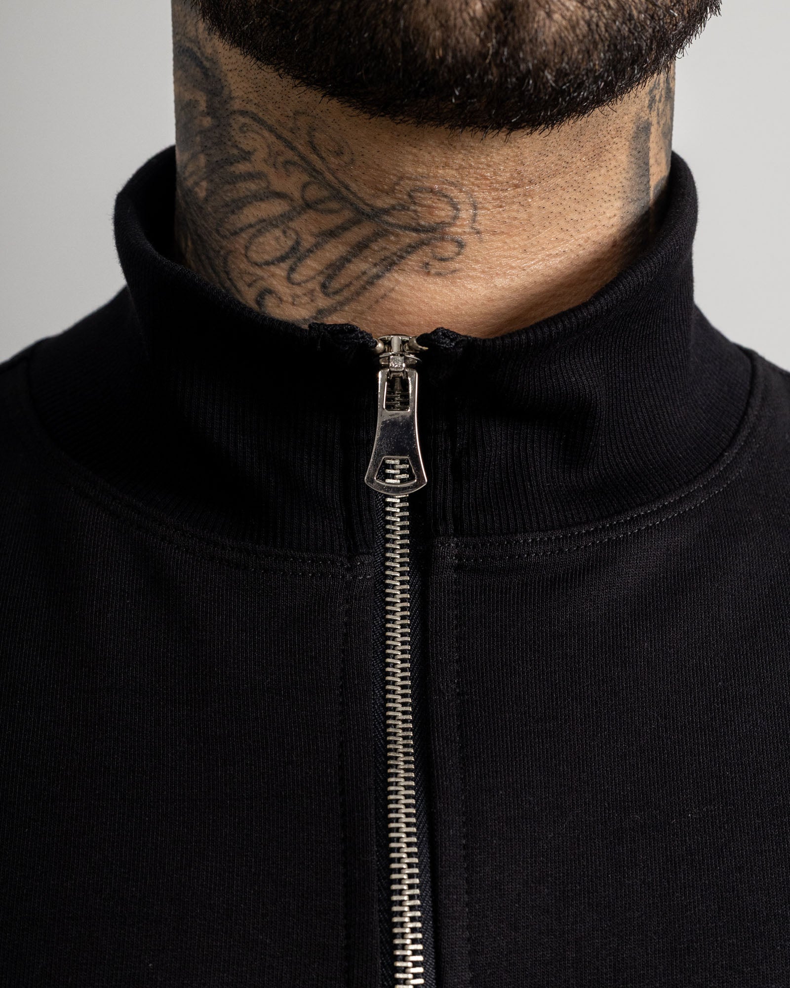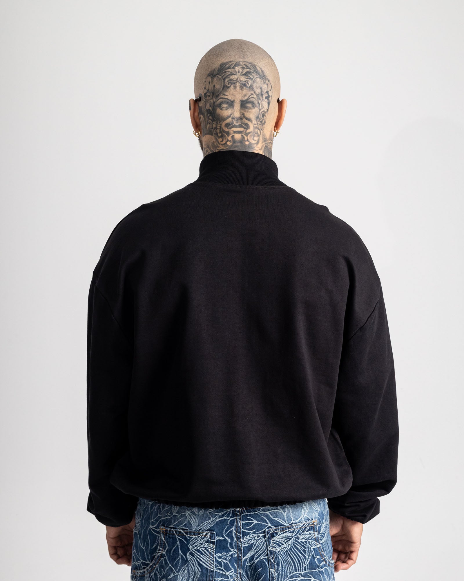 Buso con cierre de silueta cómoda y actitud street. Diseño limpio en color negro, cuello alto con cremallera metálica que marca el fit y aporta carácter, puños y ruedo con ajuste suave para un look sólido y funcional. Una prenda versátil, pensada para moverse con estilo y presencia.