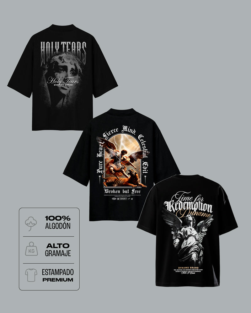 Llévate el combo más brutal de Dynamo: tres camisetas que ya hicieron historia en la calle. Diseñadas en algodón peruano premium de 200 gramos, con un peso y caída que se sienten diferentes desde el primer uso. La calidad no se negocia: estampación de alto nivel que resiste lavadas, fiestas y hasta la rutina más dura sin perder color ni detalle. Este pack reúne lo mejor de lo mejor, las camisetas más pedidas por nuestra comunidad. Tres piezas que no solo suman estilo, sino que también te salen más bacanas en combo. 🔥 Exclusivo online — mientras duren las unidades.