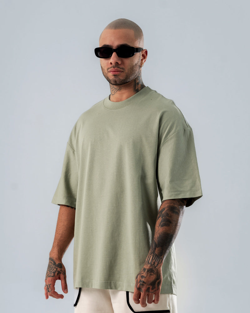 Camiseta Para Hombre Oversize Básica Verde Laurel (Talla): L