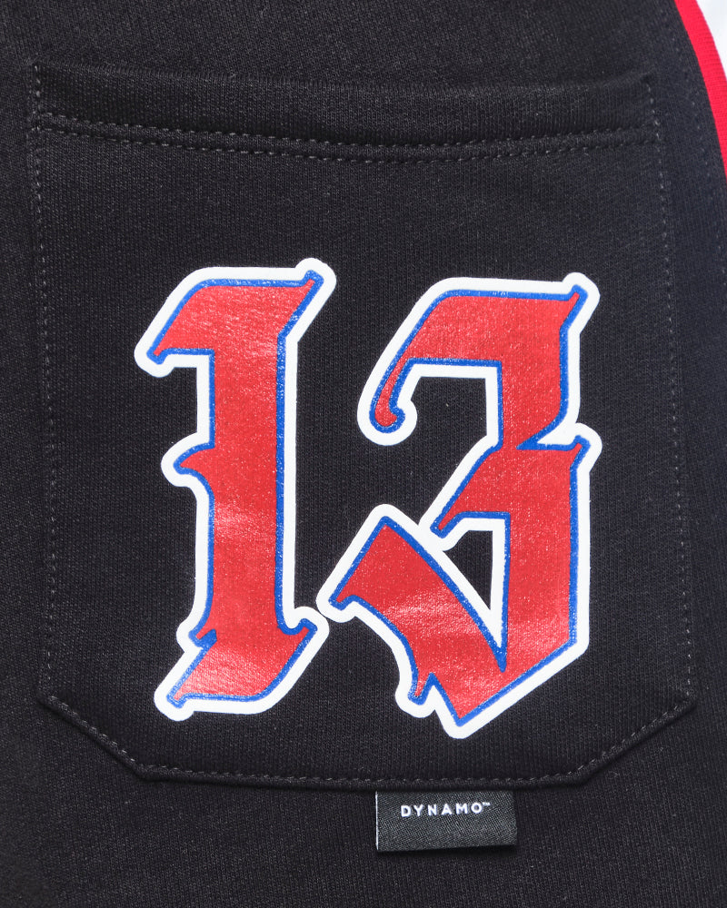 Está diseñada para los que convierten la calle en su cancha. Con silueta deportiva fit regular, paneles laterales en contraste blanco y detalles rojos, esta prenda combina actitud urbana y comodidad absoluta. Incluye cordón ajustable en cintura, bolsillo posterior funcional y gráfico bordado Dynamo en frente con número 13 en la parte trasera.
