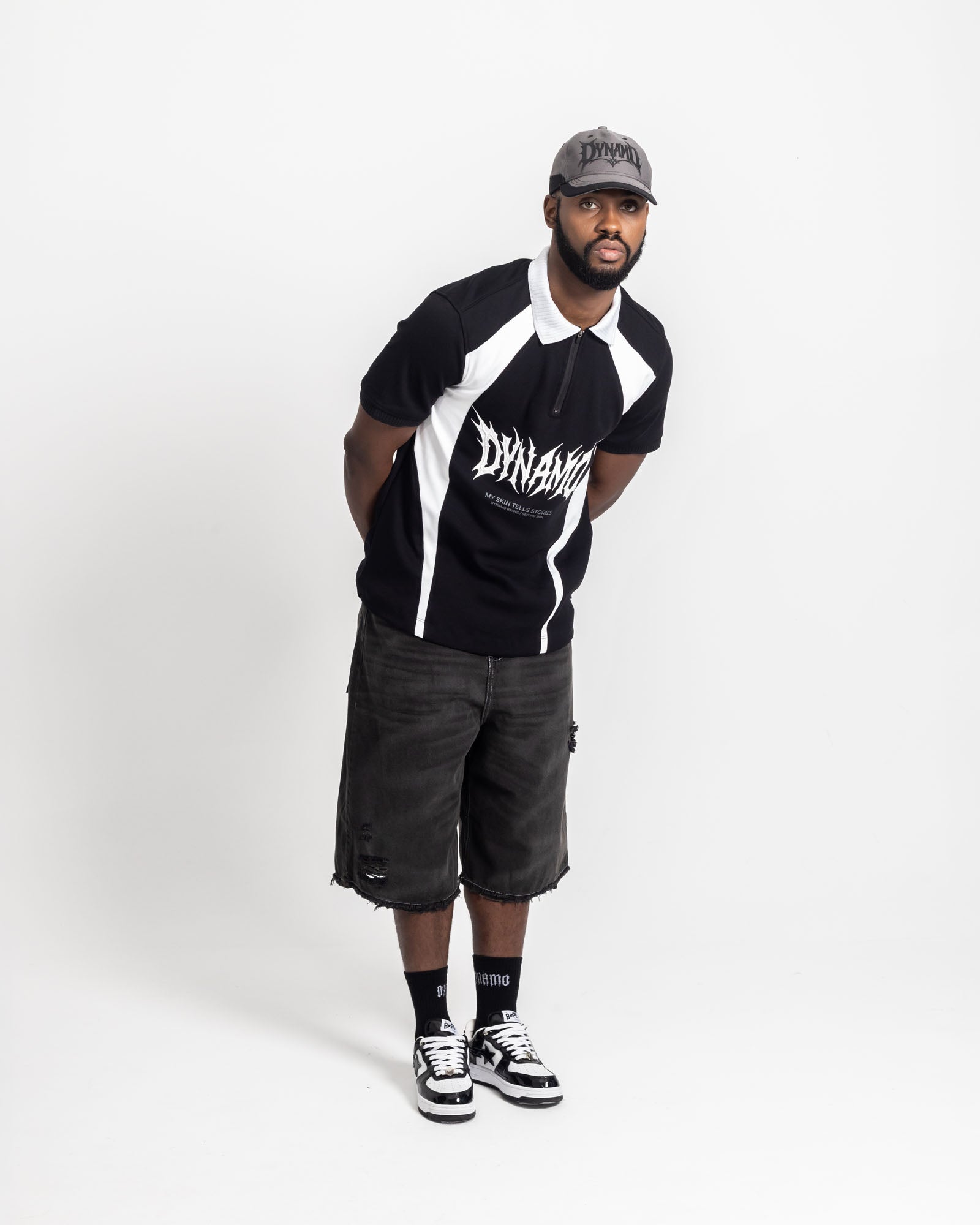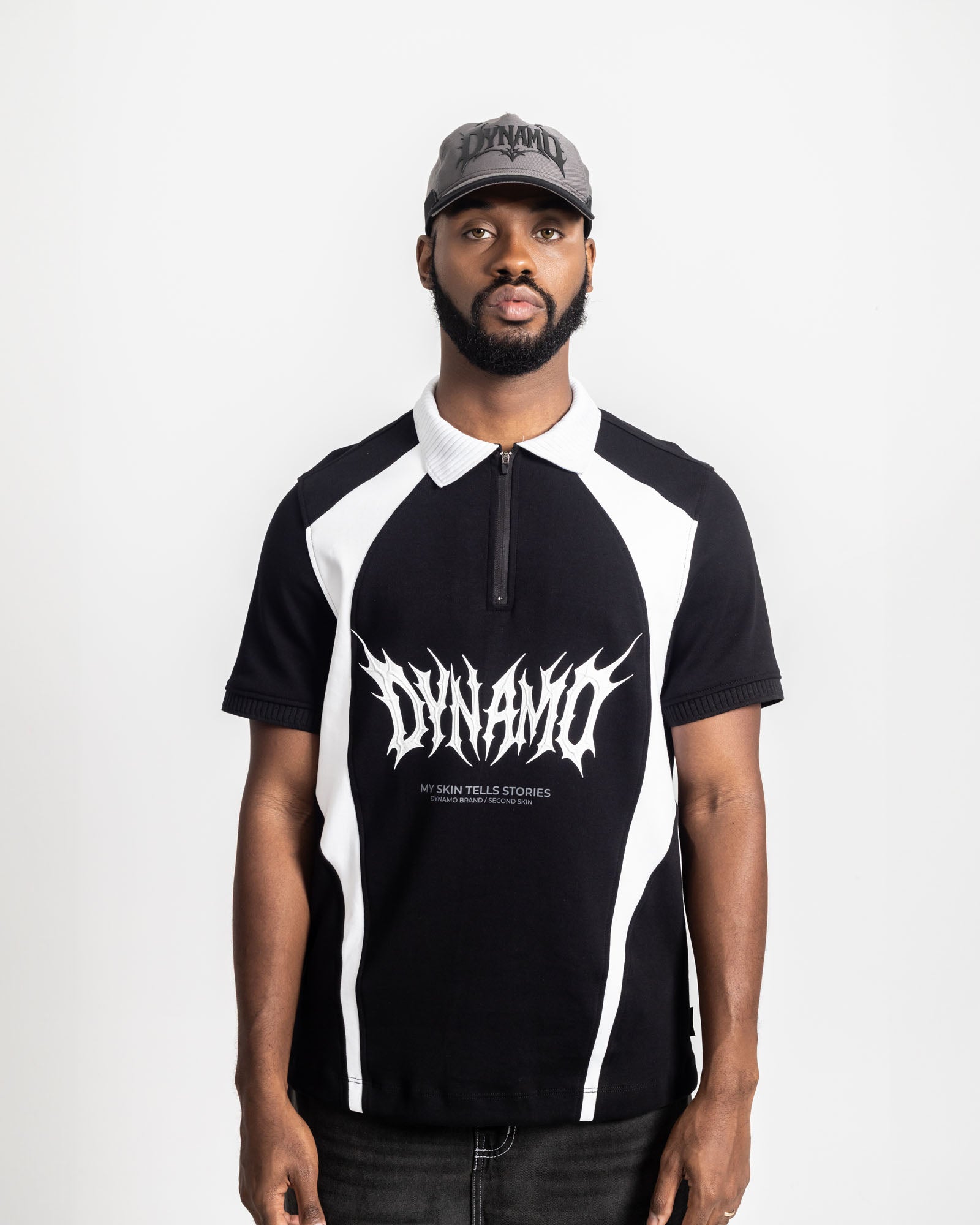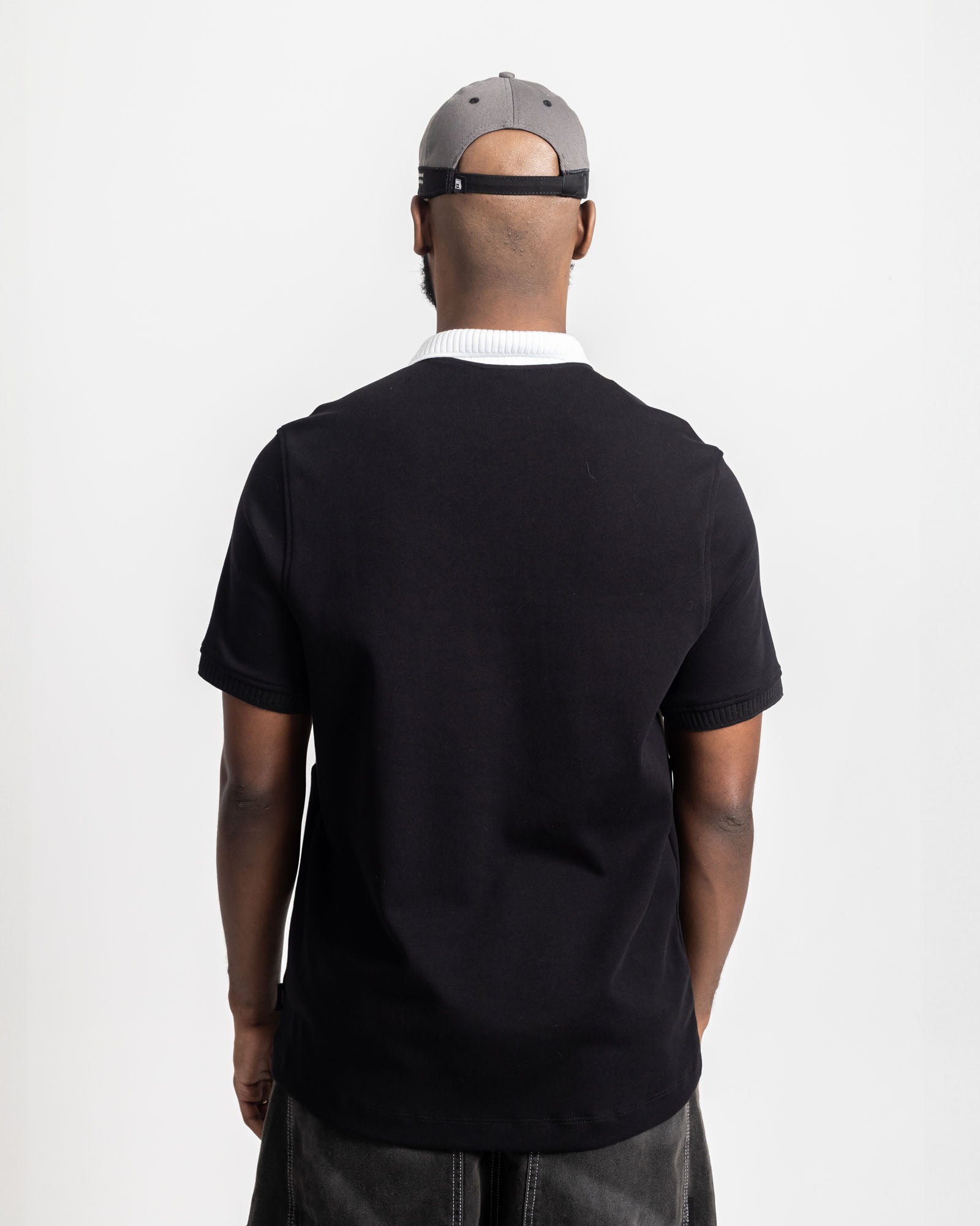 Polo streetwear de silueta relajada con estructura firme. Confeccionada en tejido de alto gramaje que aporta caída pesada y sensación robusta al uso. Incorpora cierre frontal corto tipo zip que permite regular el cuello y transformar el look según la ocasión.