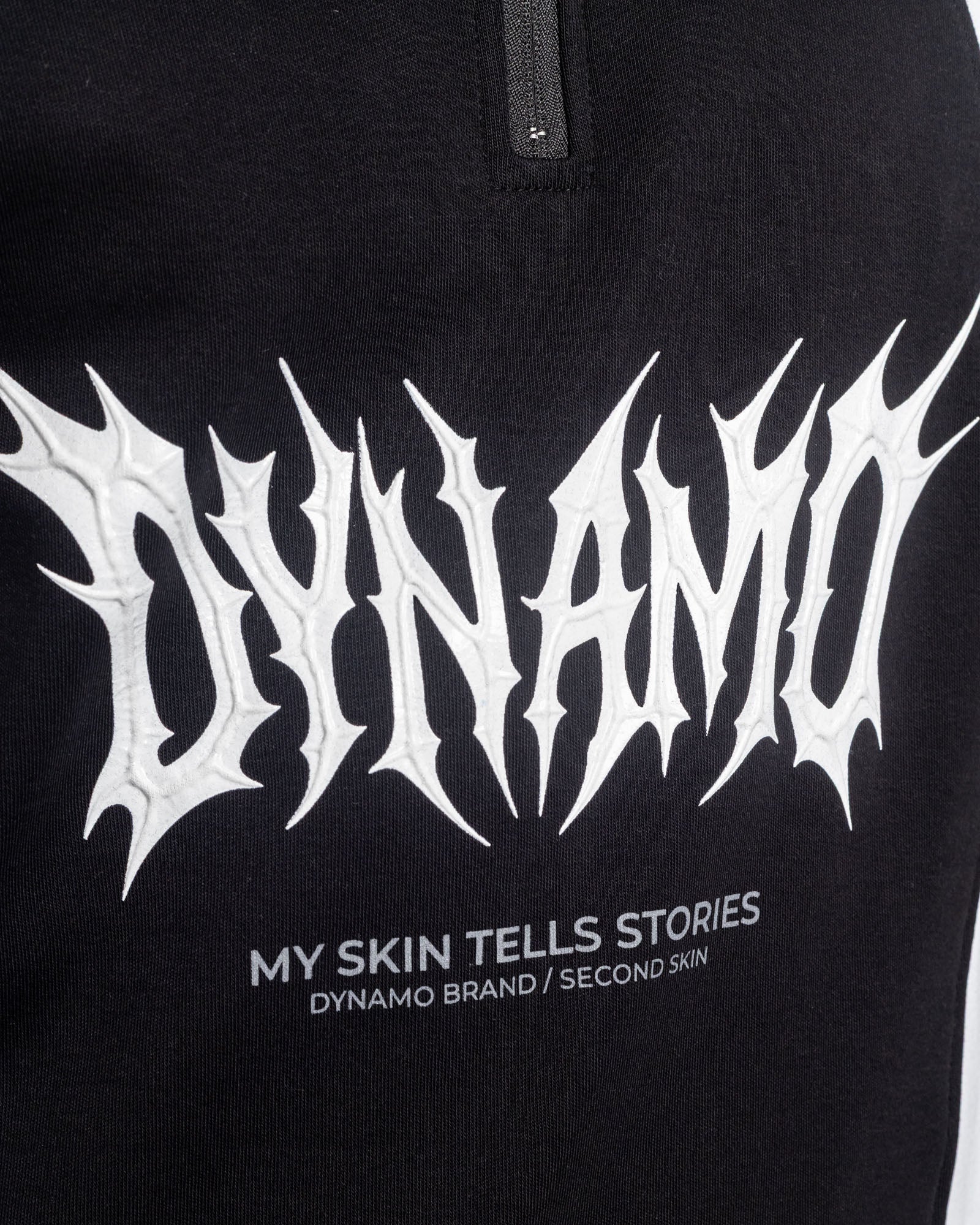 El diseño combina paneles en contraste que recorren el frente y hombros, marcando líneas limpias y un visual agresivo. Cuello tejido con rib acanalado para mayor ajuste y durabilidad.