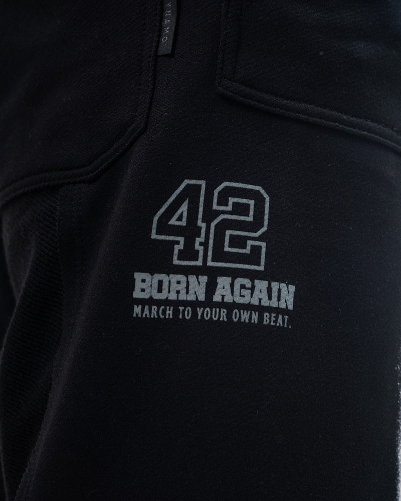 Bermuda jorts en denim rígido negro lavado, con silueta amplia estilo baggy y largo XL. Diseño minimal pero con presencia fuerte. Hechos pa’ quienes llevan el streetwear en la sangre y no le bajan al volumen visual. Dignos del archivo Dynamo.